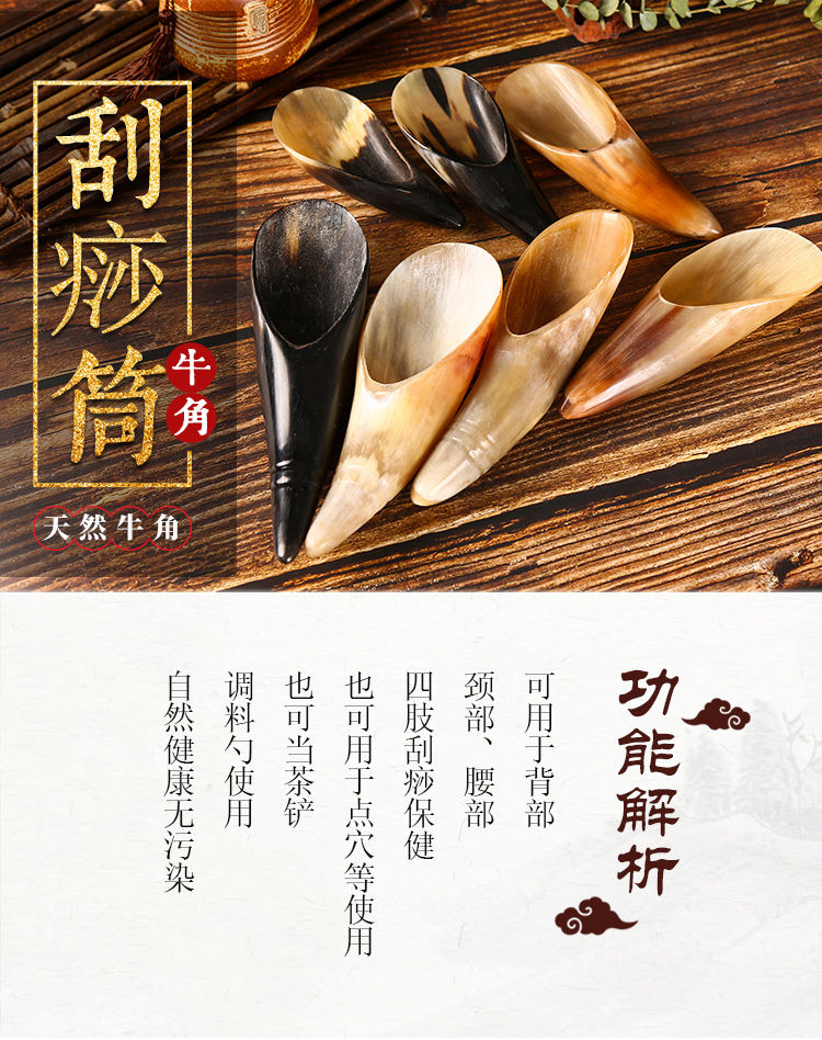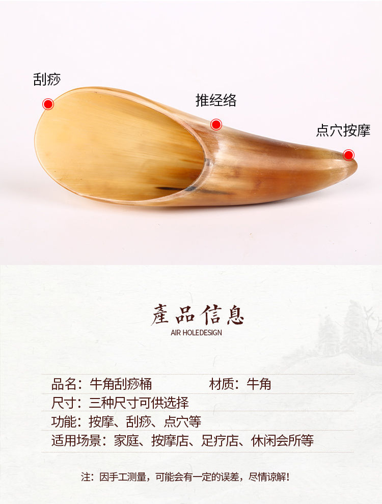 天然牦牛角刮痧按摩板中号拨筋棒全身通用颈部背部足底特大牛角筒