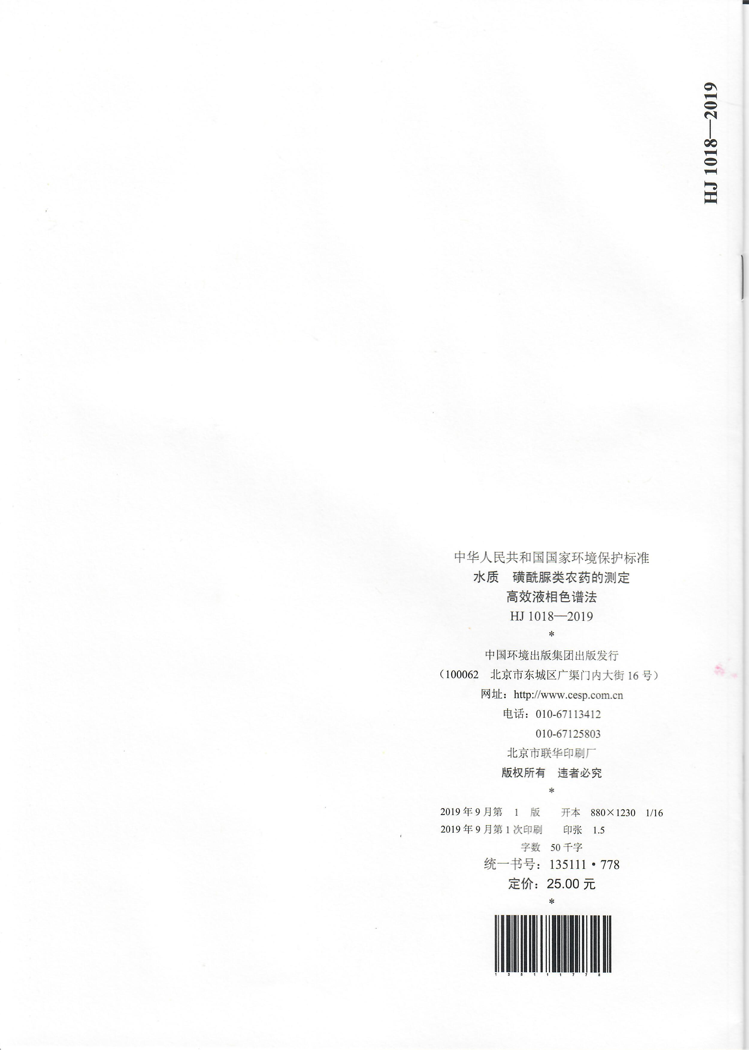 HJ1018-2019 磺酰脲类农药的测定 高效液相色谱法 旗舰店