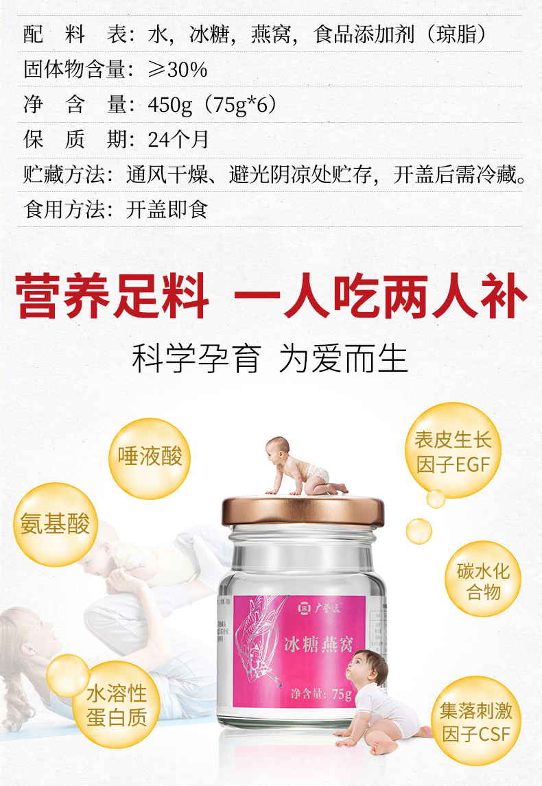 广誉远即食冰糖燕窝75g*6瓶 滋补养颜 印尼进口原料