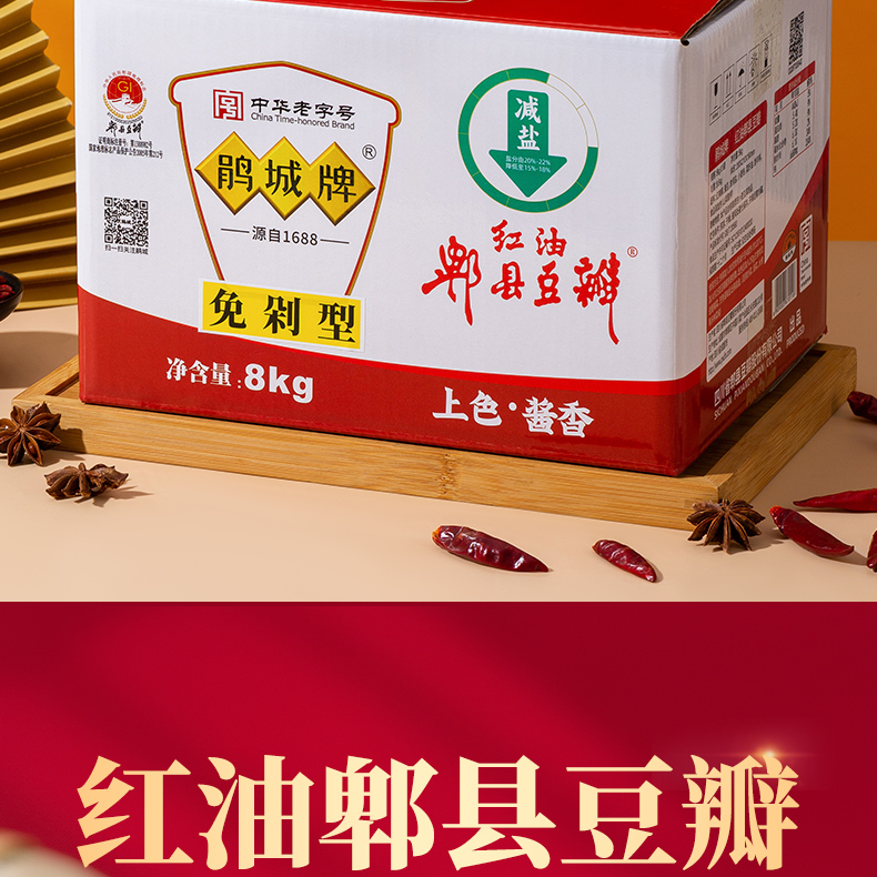 鹃城牌 红油郫县豆瓣8kg大包装 少盐上色款 餐馆专用商用四川正宗