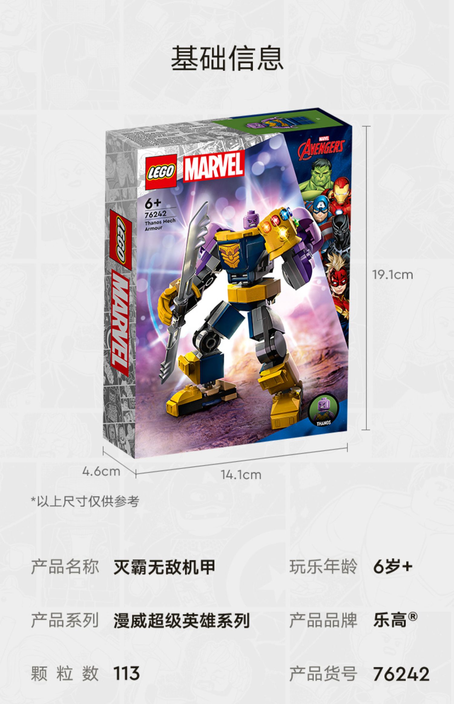 乐高超级英雄系列76242灭霸无敌机甲拼搭积木