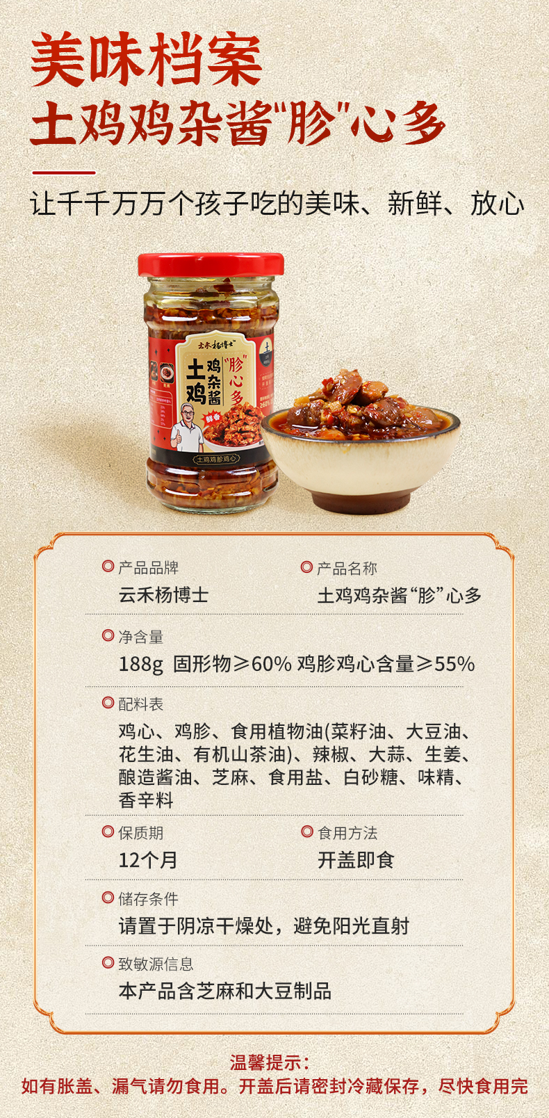【杨博士自营鸡胗酱】土鸡鸡杂酱 餐餐就酱吃 下饭不用愁 净含量188g