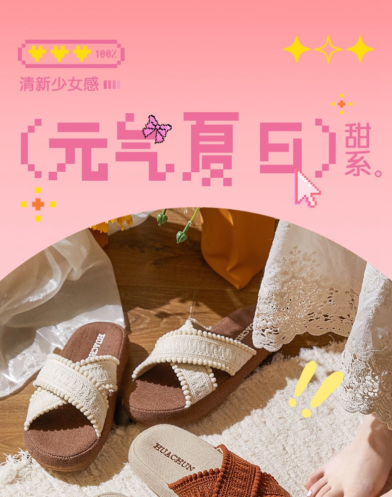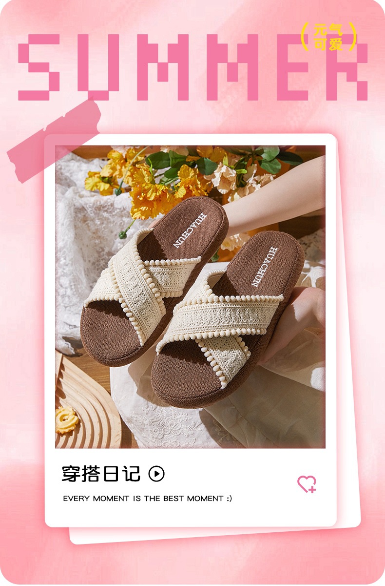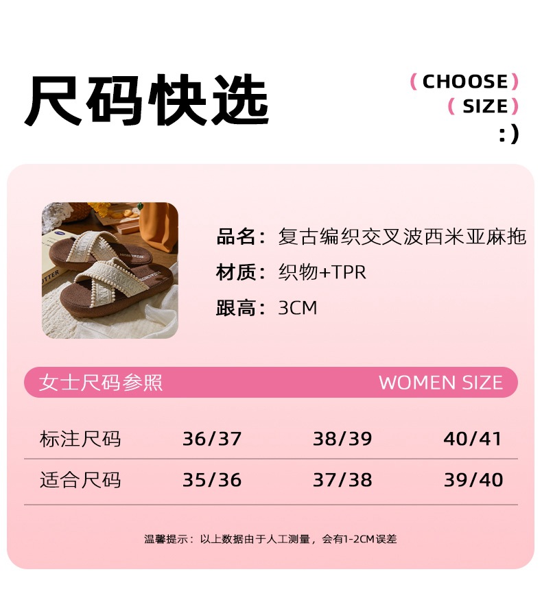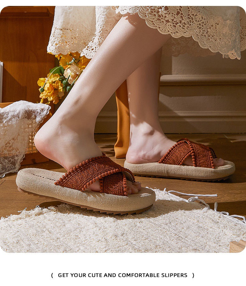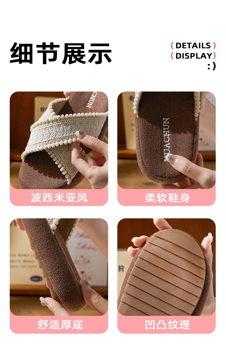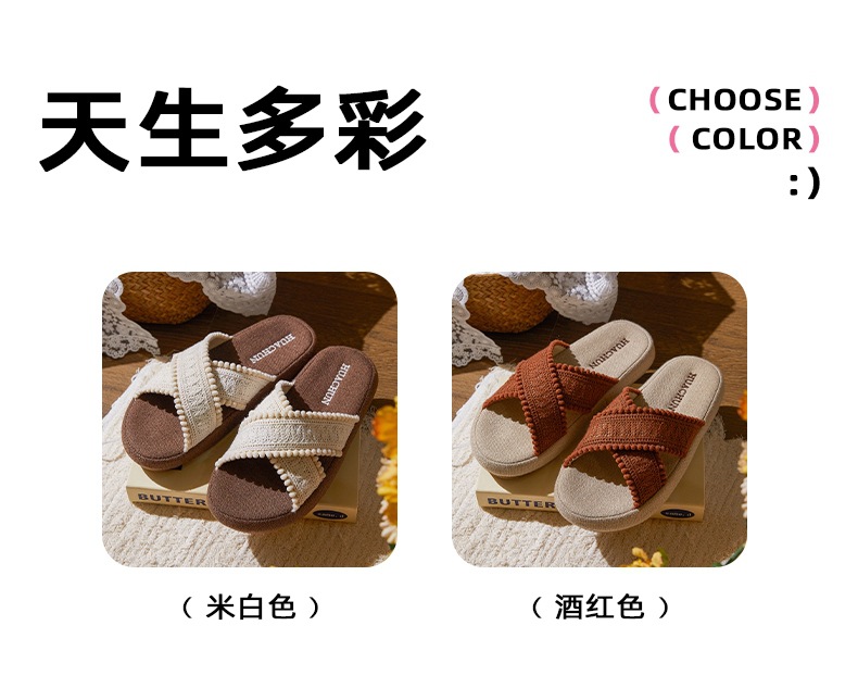 春夏新品民族风复古编织交叉波西米亚麻拖鞋居家外穿女[WG25651]
