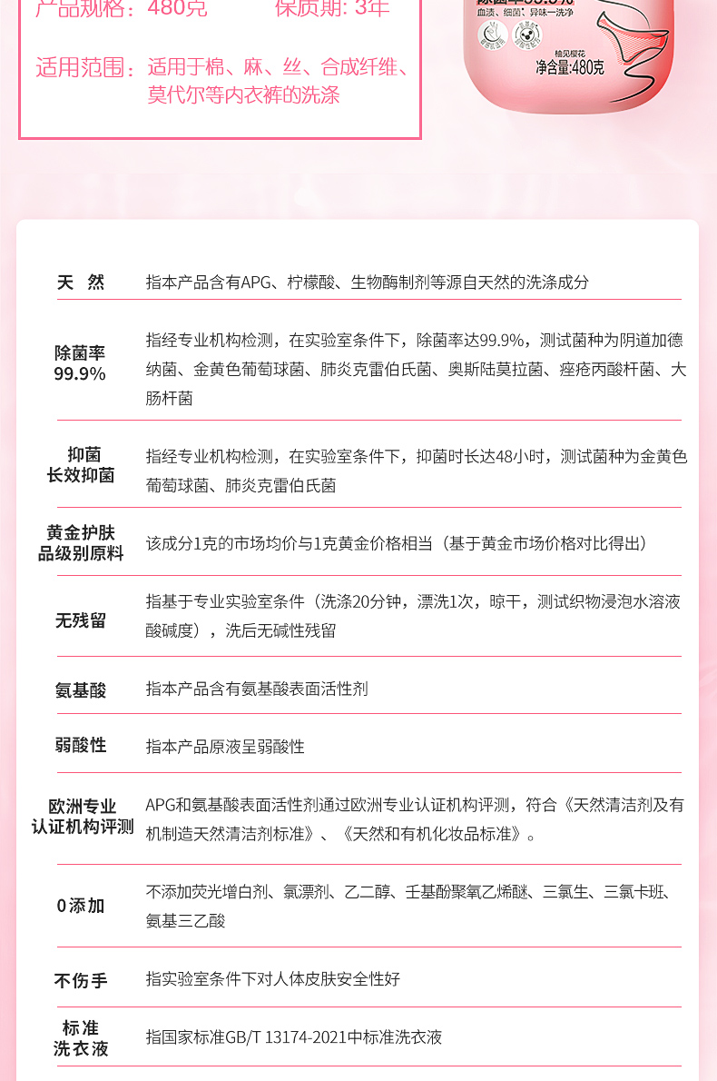 立白内衣专护除菌洗衣液480g