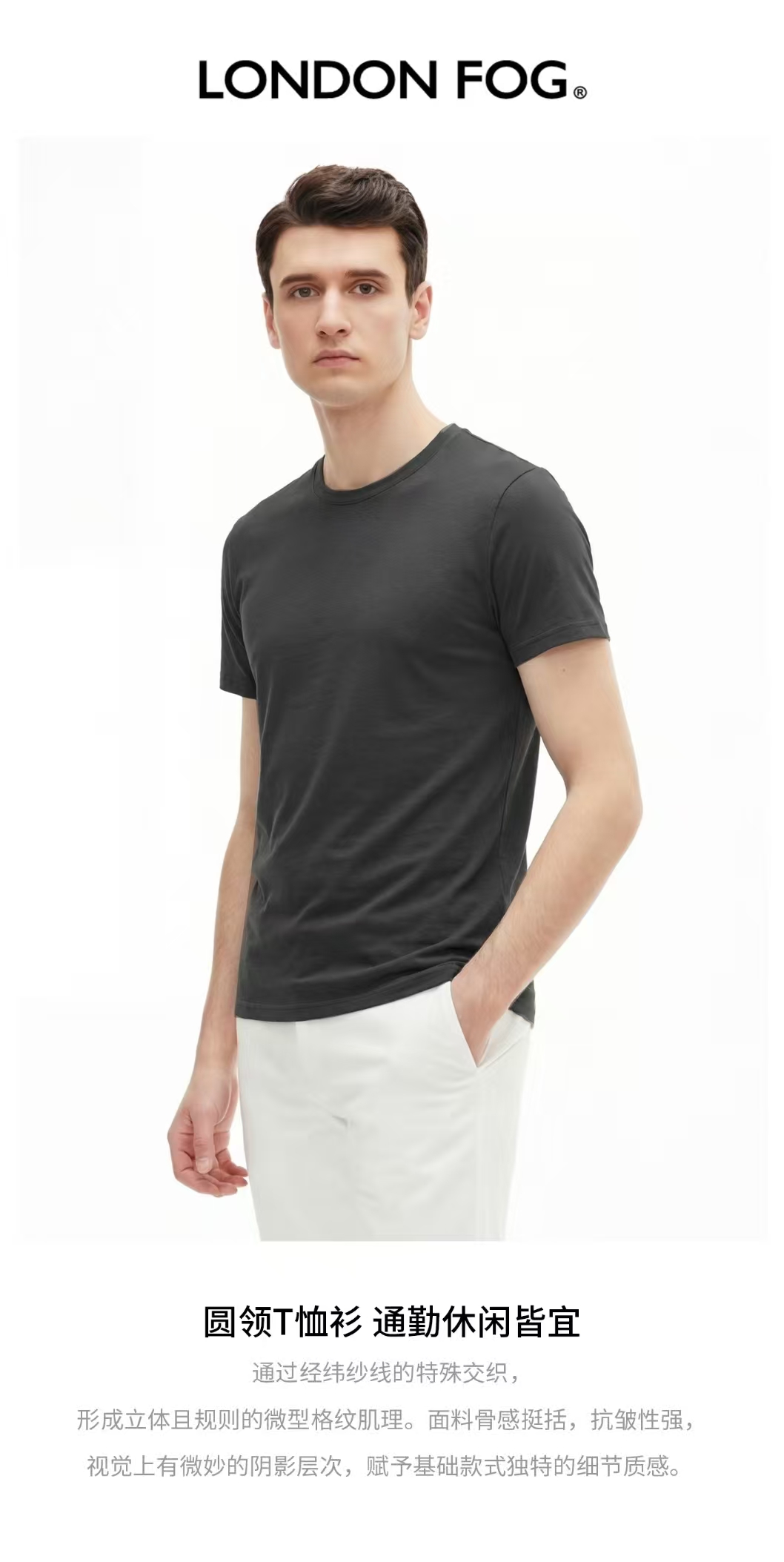【直发】LONDONFOG 男士圆领净色平纹短袖T恤﹣DLSKTM26A751
