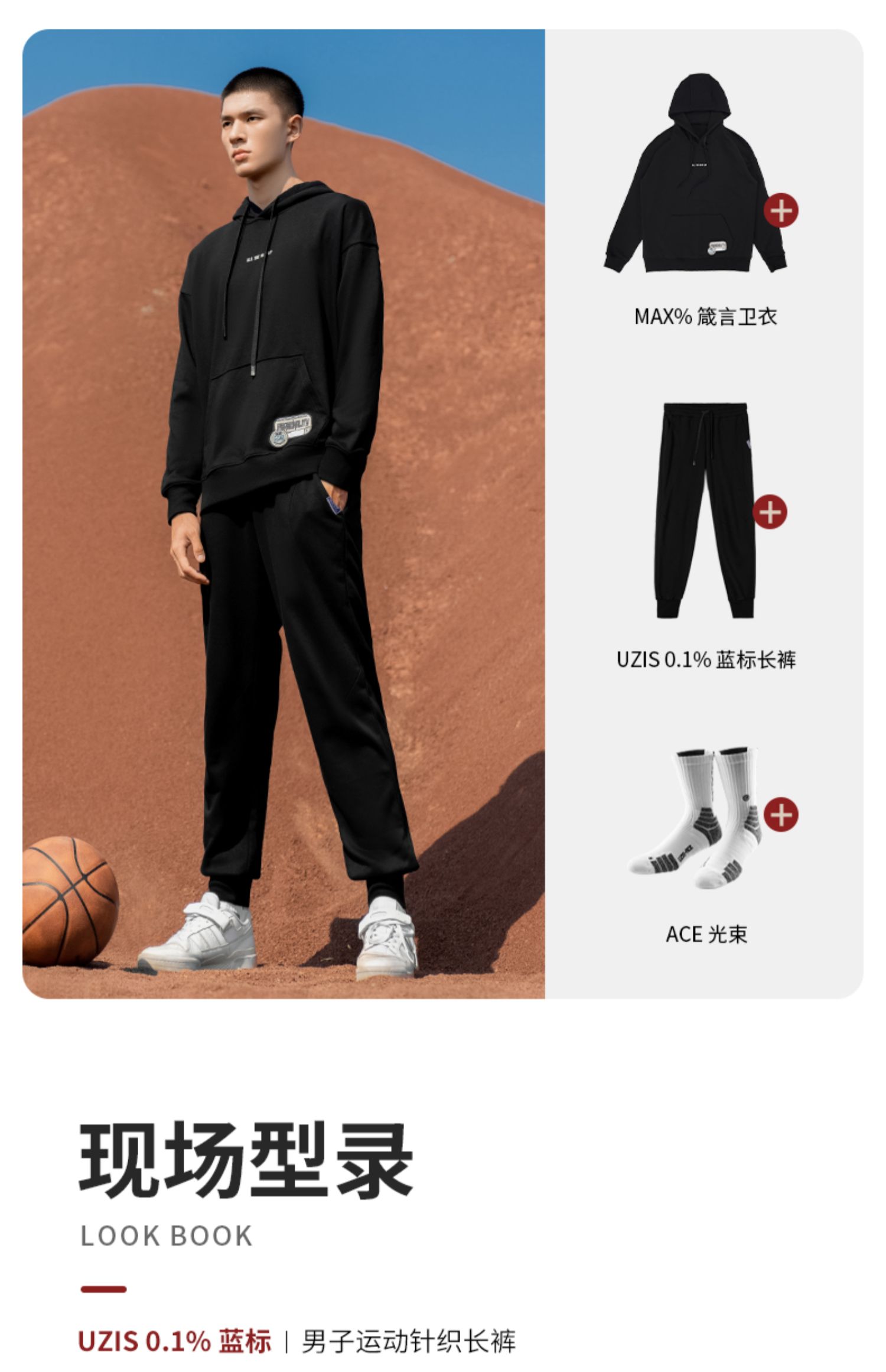 0.1% UZIS运动裤男秋季美式休闲针织篮球长裤宽松训练裤子[蓝标]
