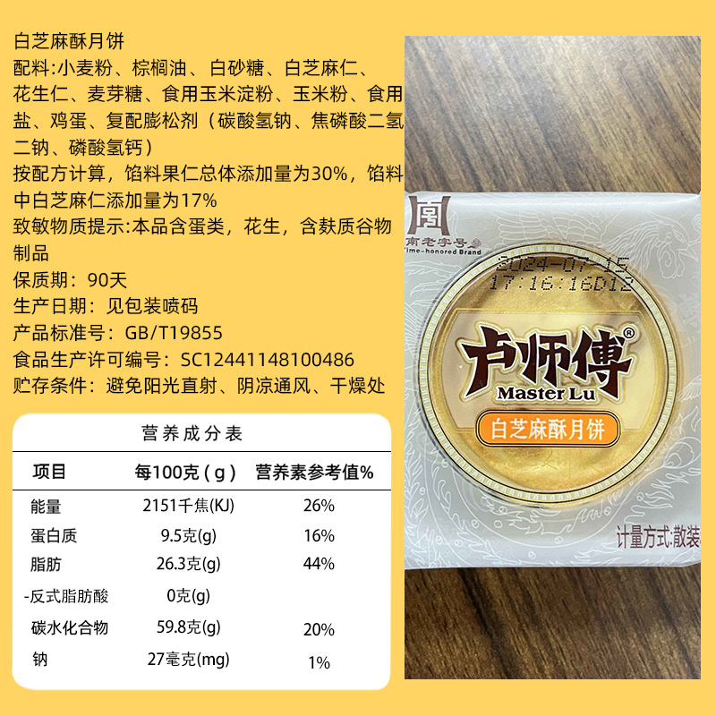 卢师傅月饼白芝麻味38g