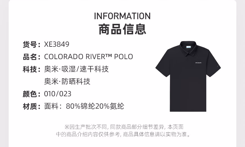 哥伦比亚男式净色速干POLO衫XE3849