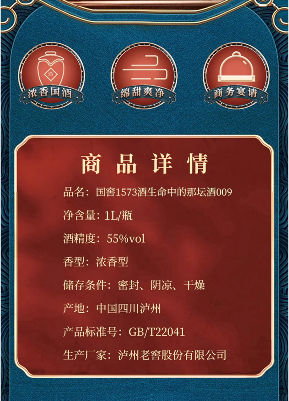 【酒厂直营】55度 国窖1573生命中的那坛酒009/1L 泸州老窖官方旗舰店