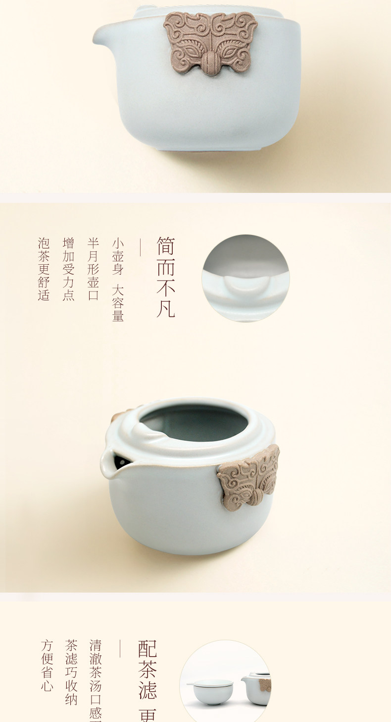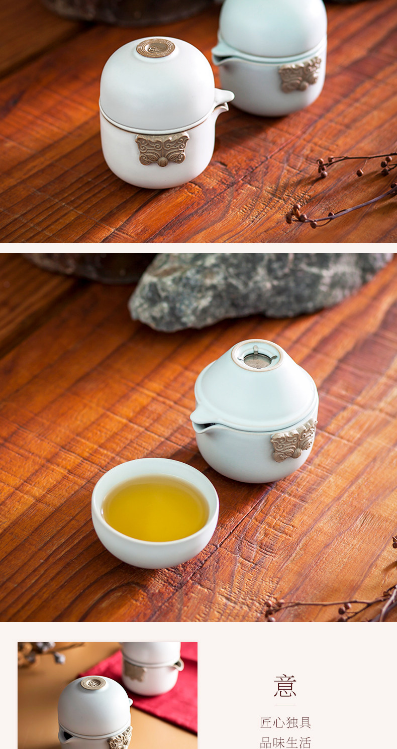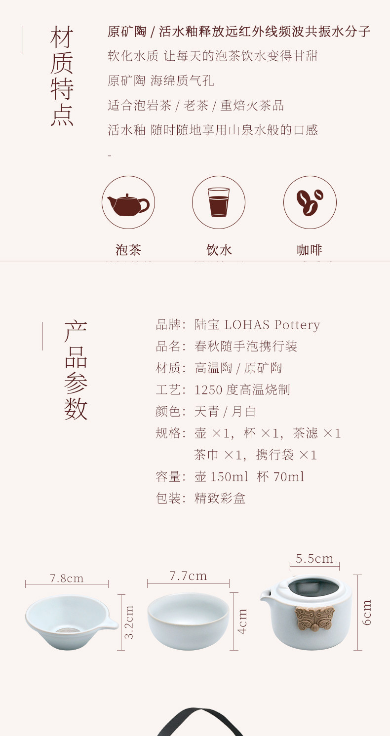 台湾陆宝茶具快客杯旅行茶器户外一壶一杯配茶滤易泡壶春秋随手泡天青月白