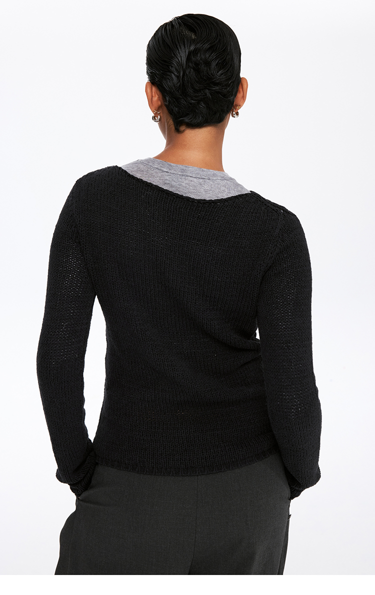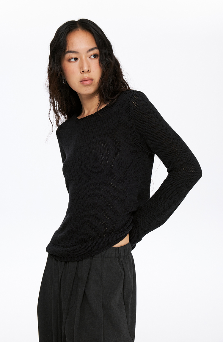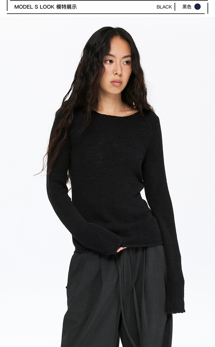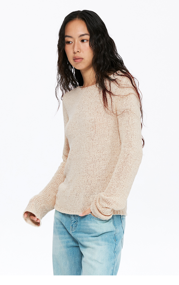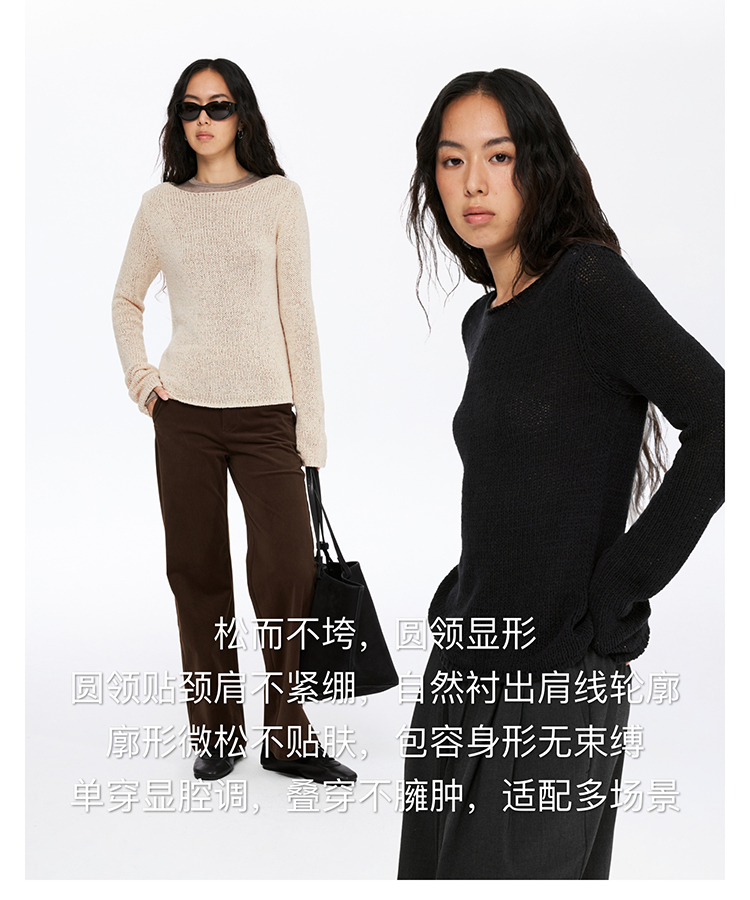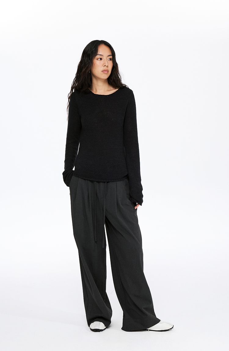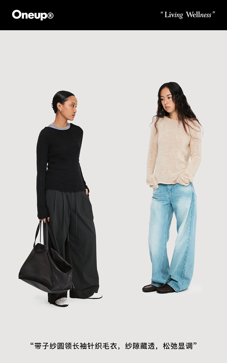 oneup带子纱圆领长袖针织毛衣