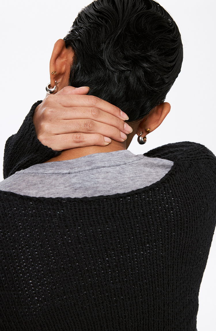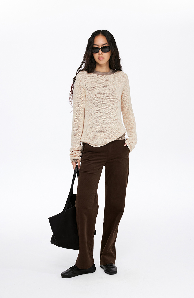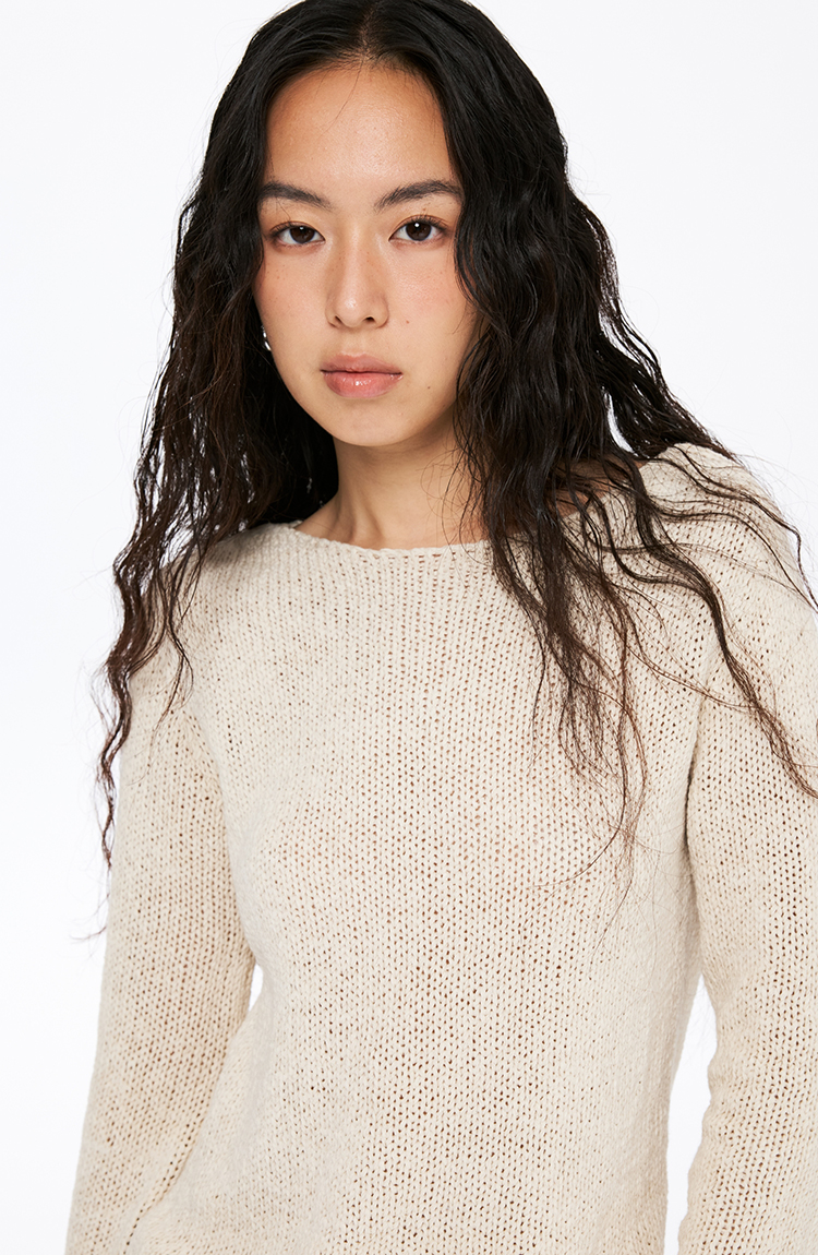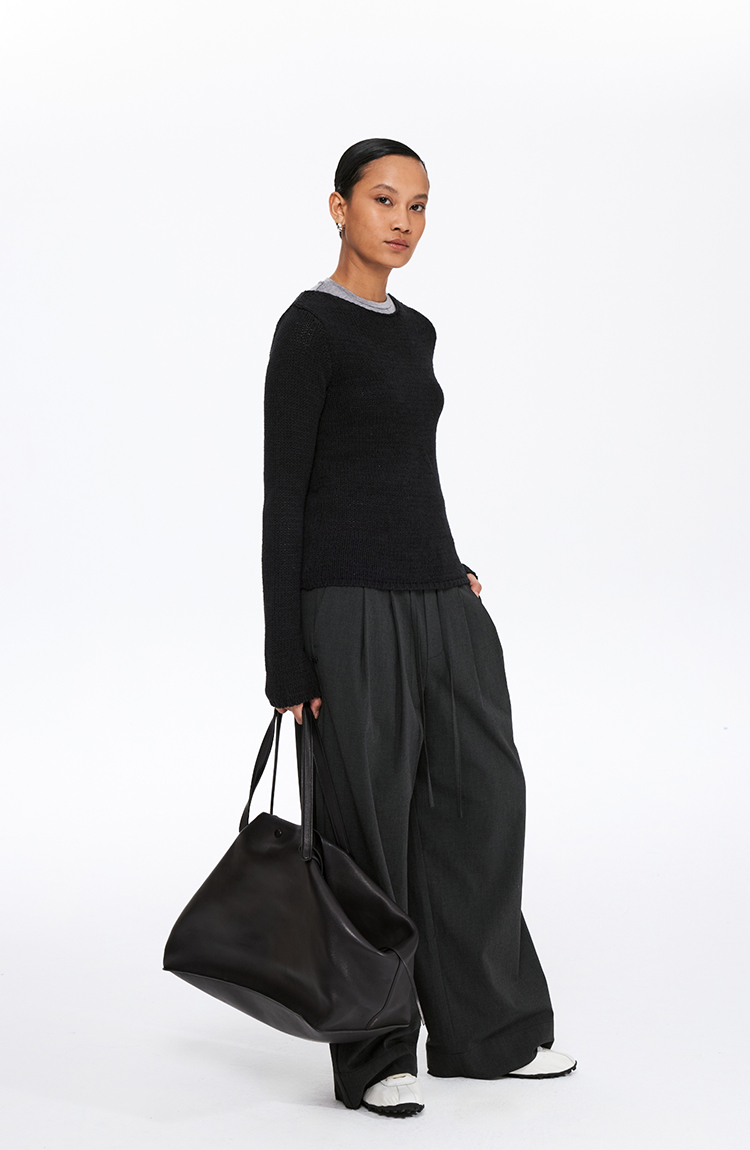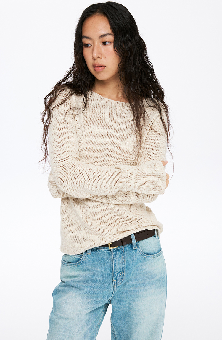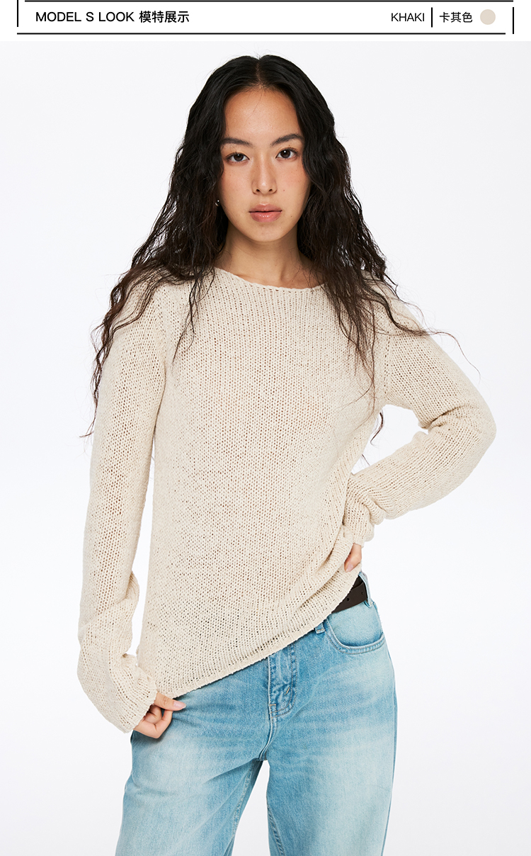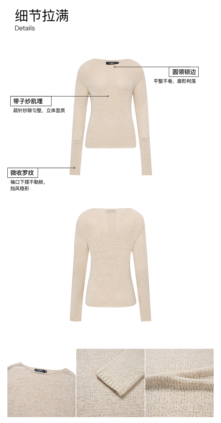 oneup带子纱圆领长袖针织毛衣