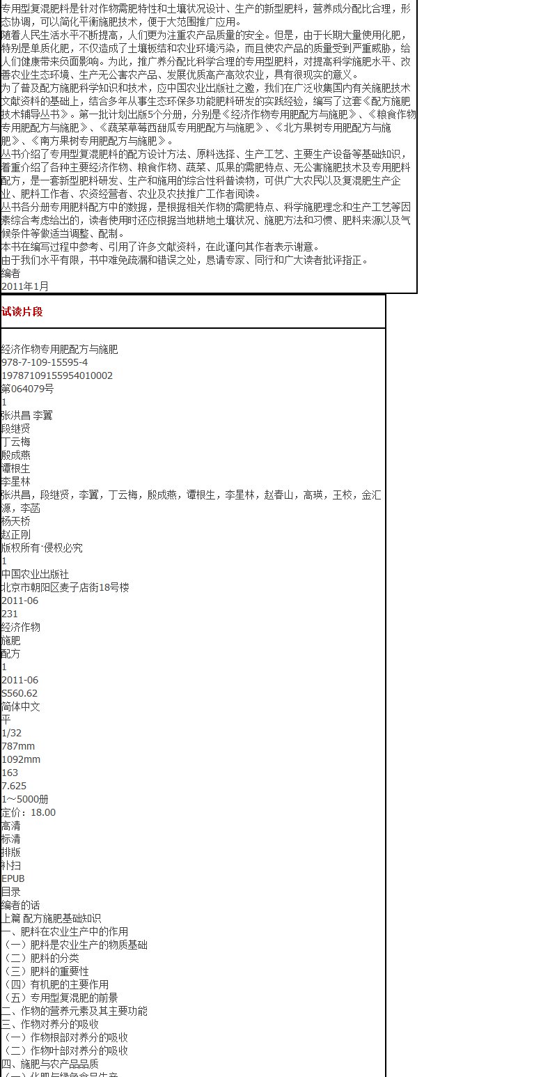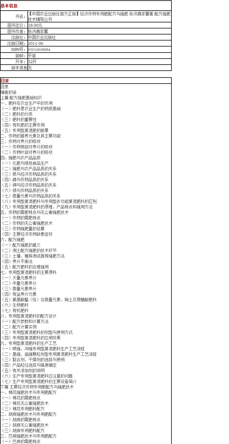 【中国农业出版社官方正版】经济作物专用肥配方与施肥 张洪昌李翼著 配方施肥技术辅导丛书