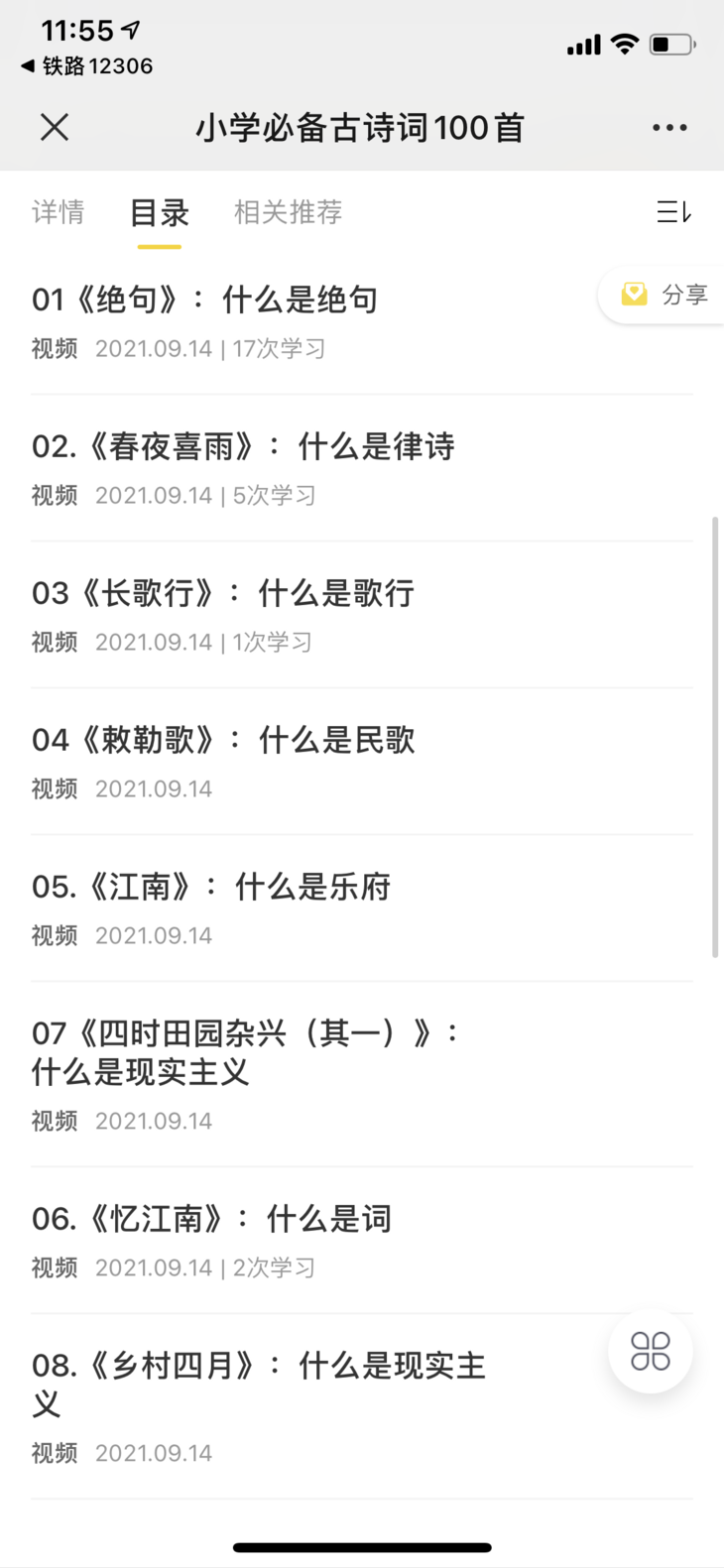 在目录中找到相应古诗词就可以学习啦~