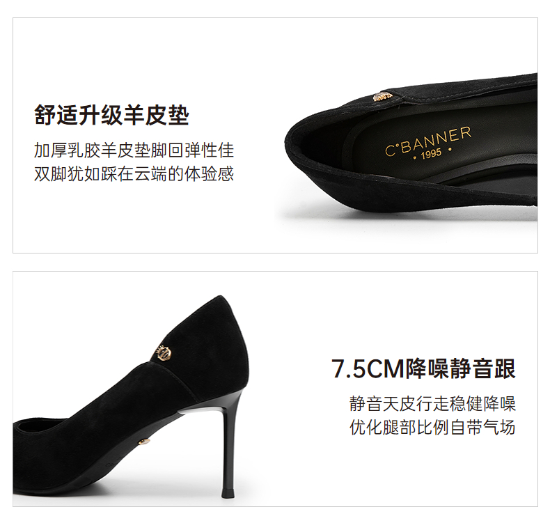【静音系列】千百度中跟羊皮单鞋女秋季裸色小香风晚晚鞋A24482701/A24482703/A24482702/A24482704