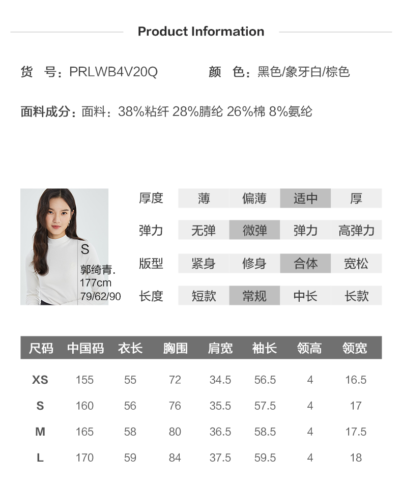 PRICH时尚半高领修身打底PRLWB4V20Q