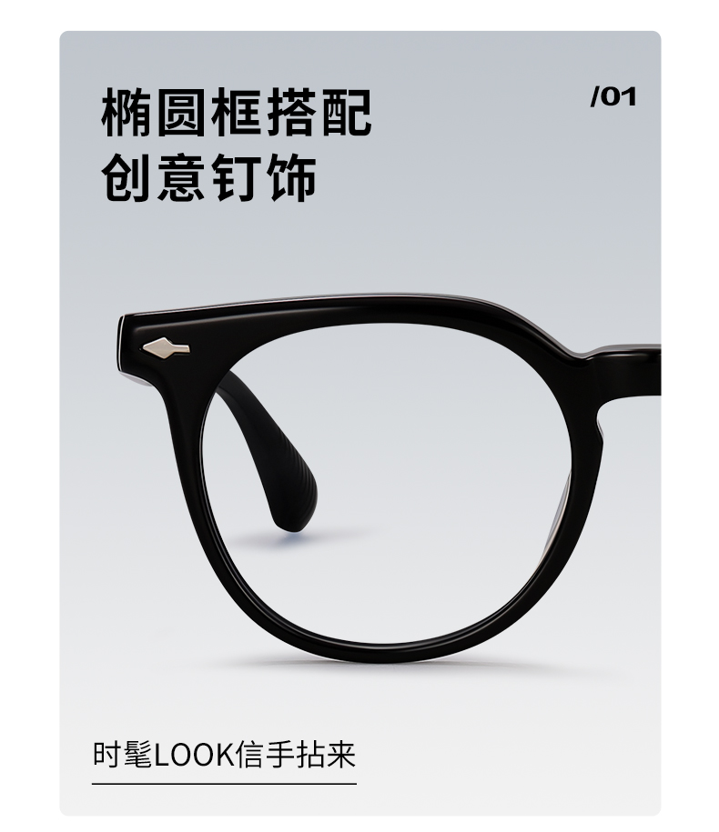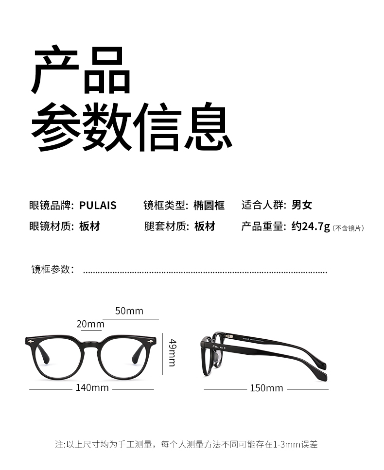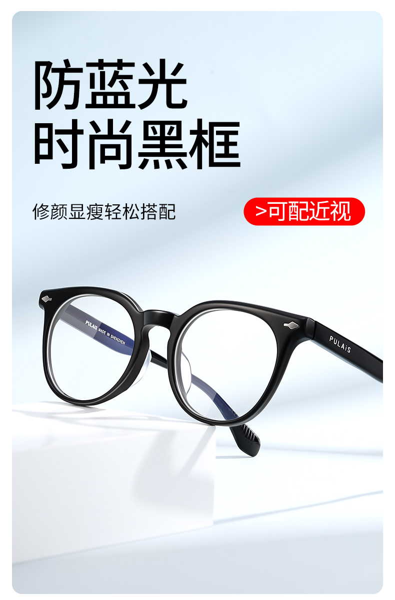 普莱斯光学镜框PBG24029A 板材镜框不易破损 宽边设计配镜片更美观 男女同款 三色可选