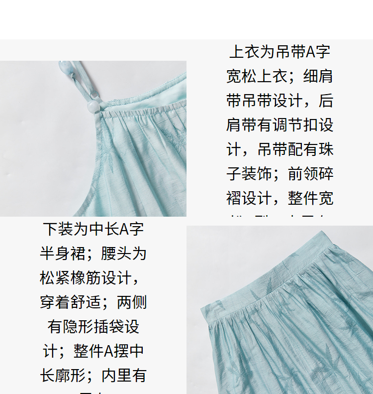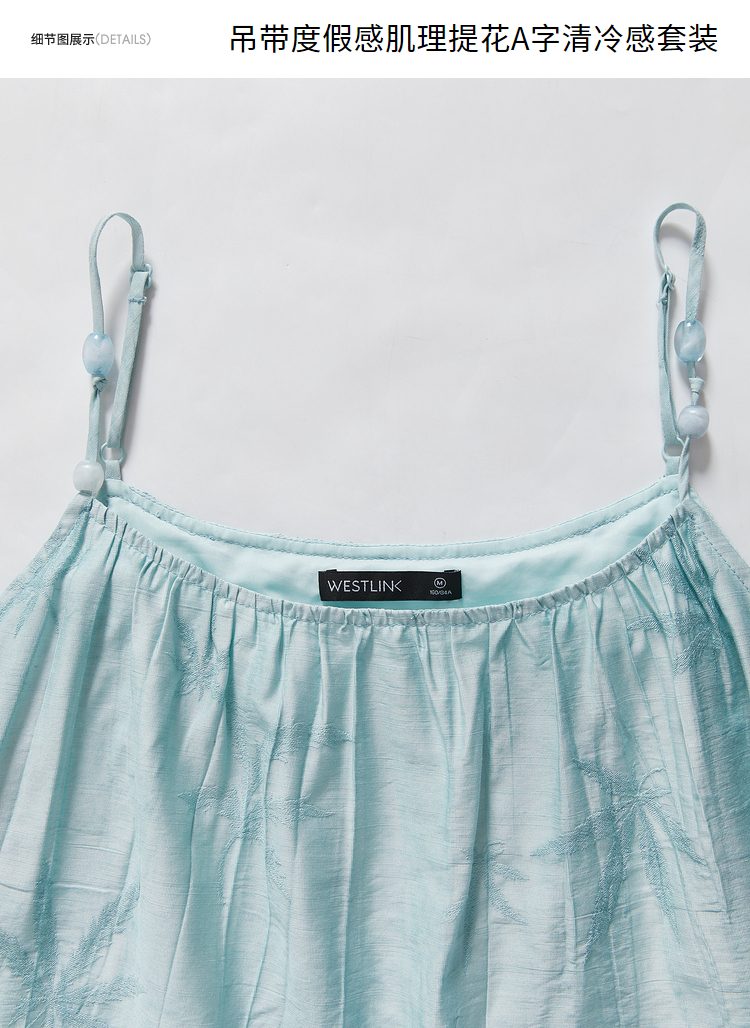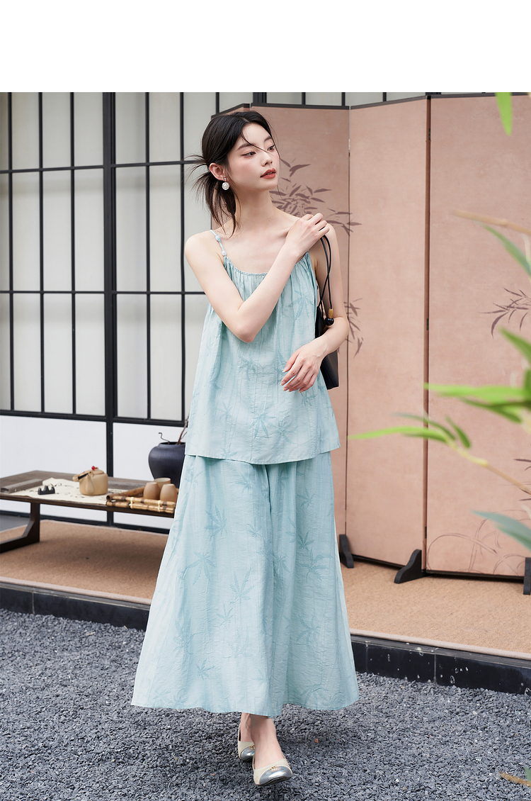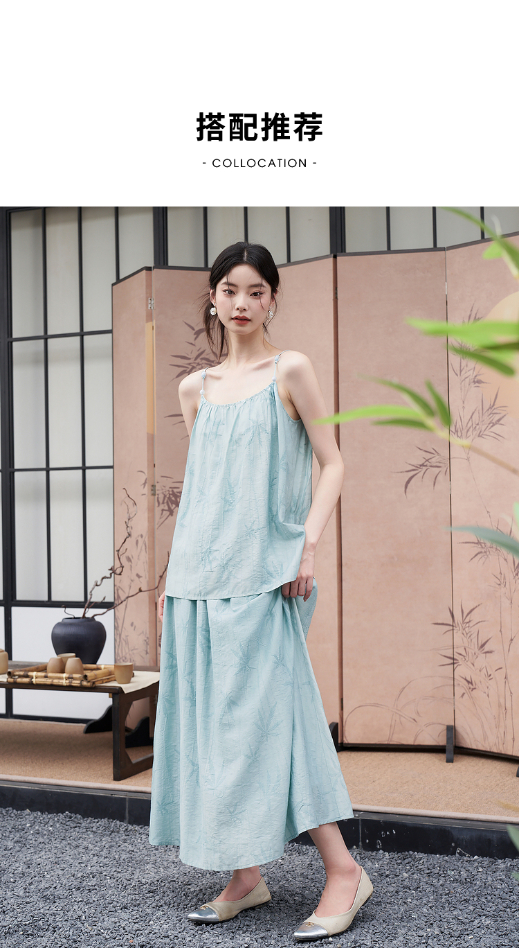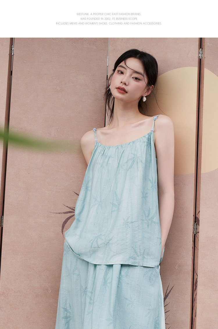 海边度假肌理提花清冷两件套女夏季竹子吊带搭半裙套装V1341232