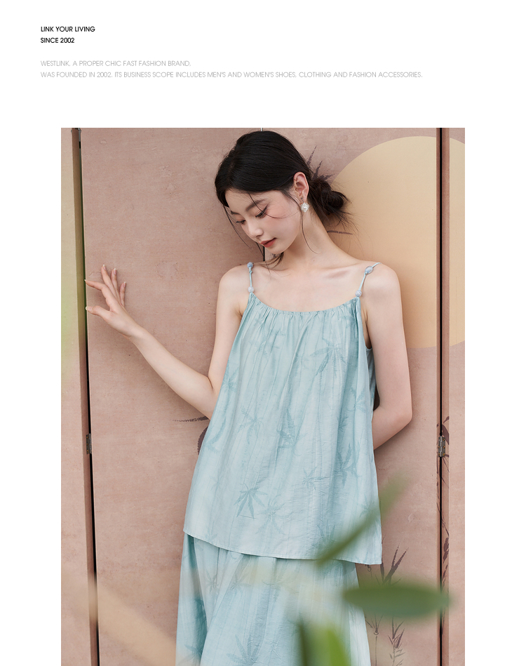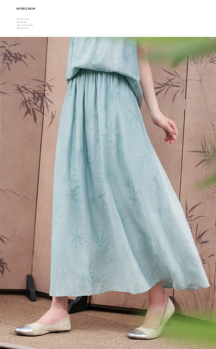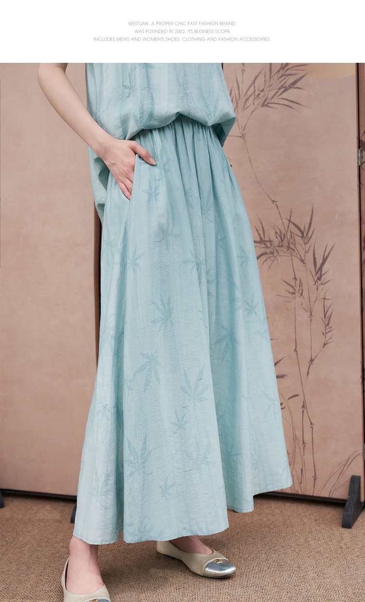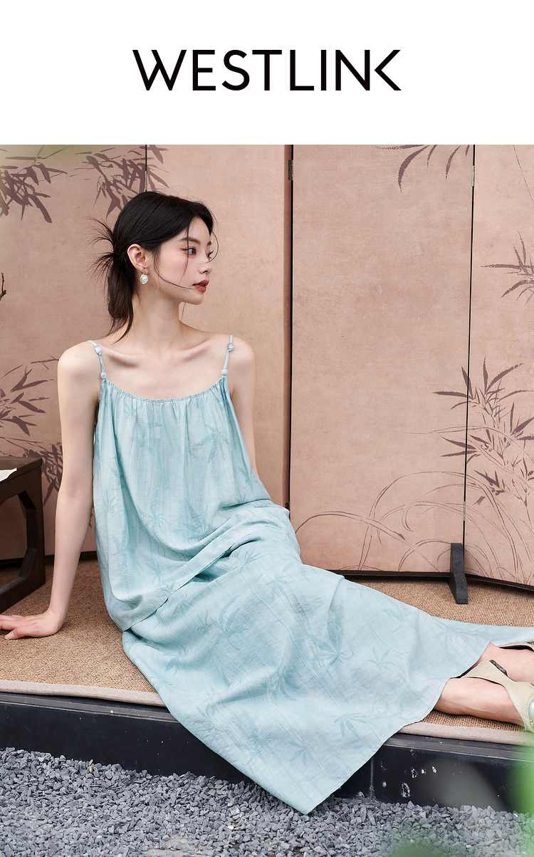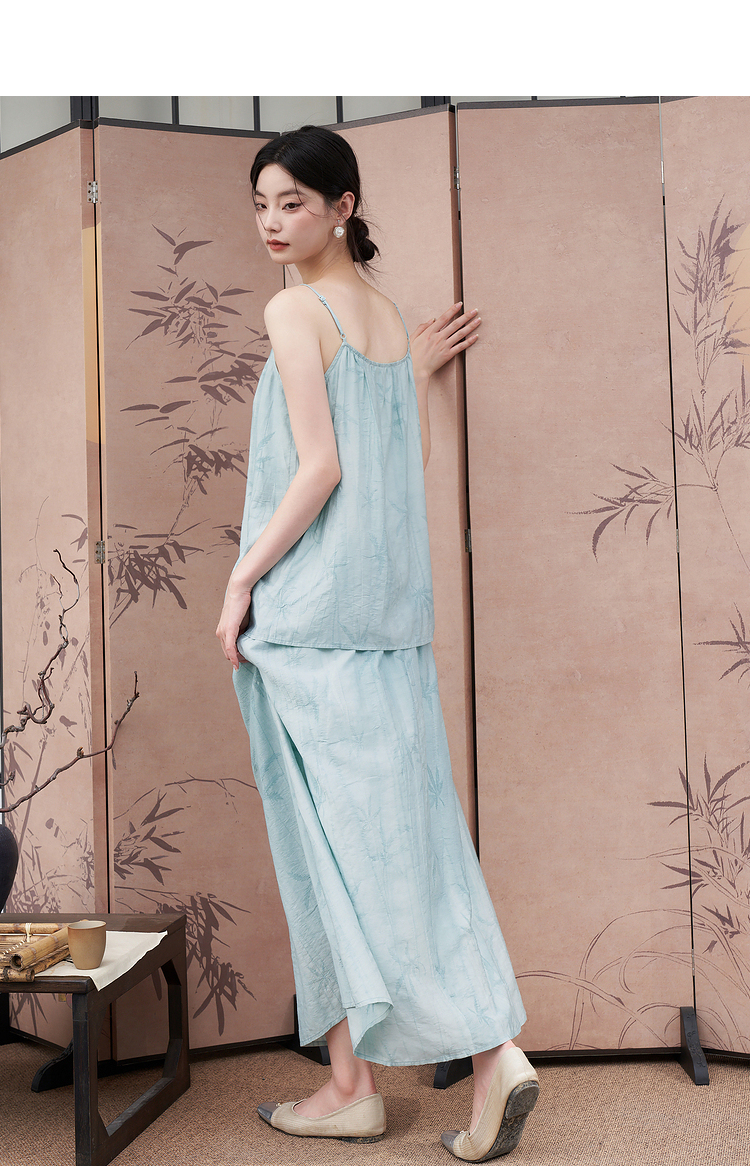 海边度假肌理提花清冷两件套女夏季竹子吊带搭半裙套装V1341232