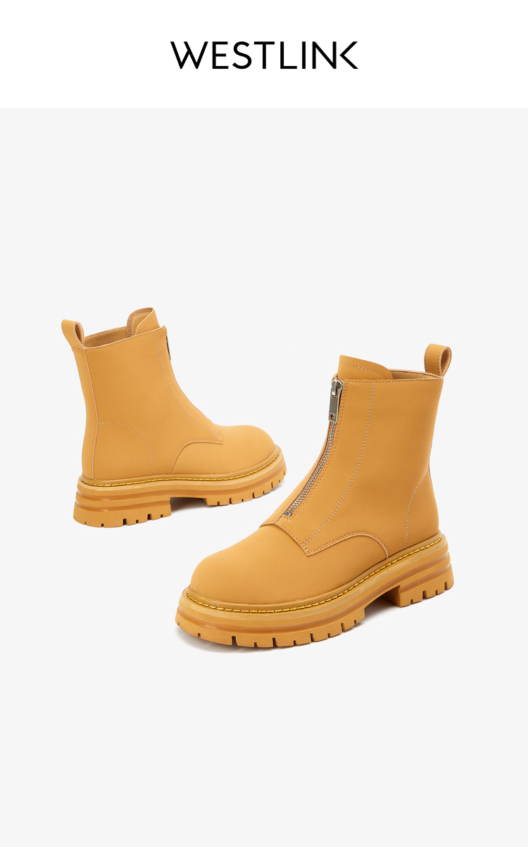 西遇马丁靴瘦瘦靴女冬季新款英伦风短靴百搭厚底中筒工装靴22123954