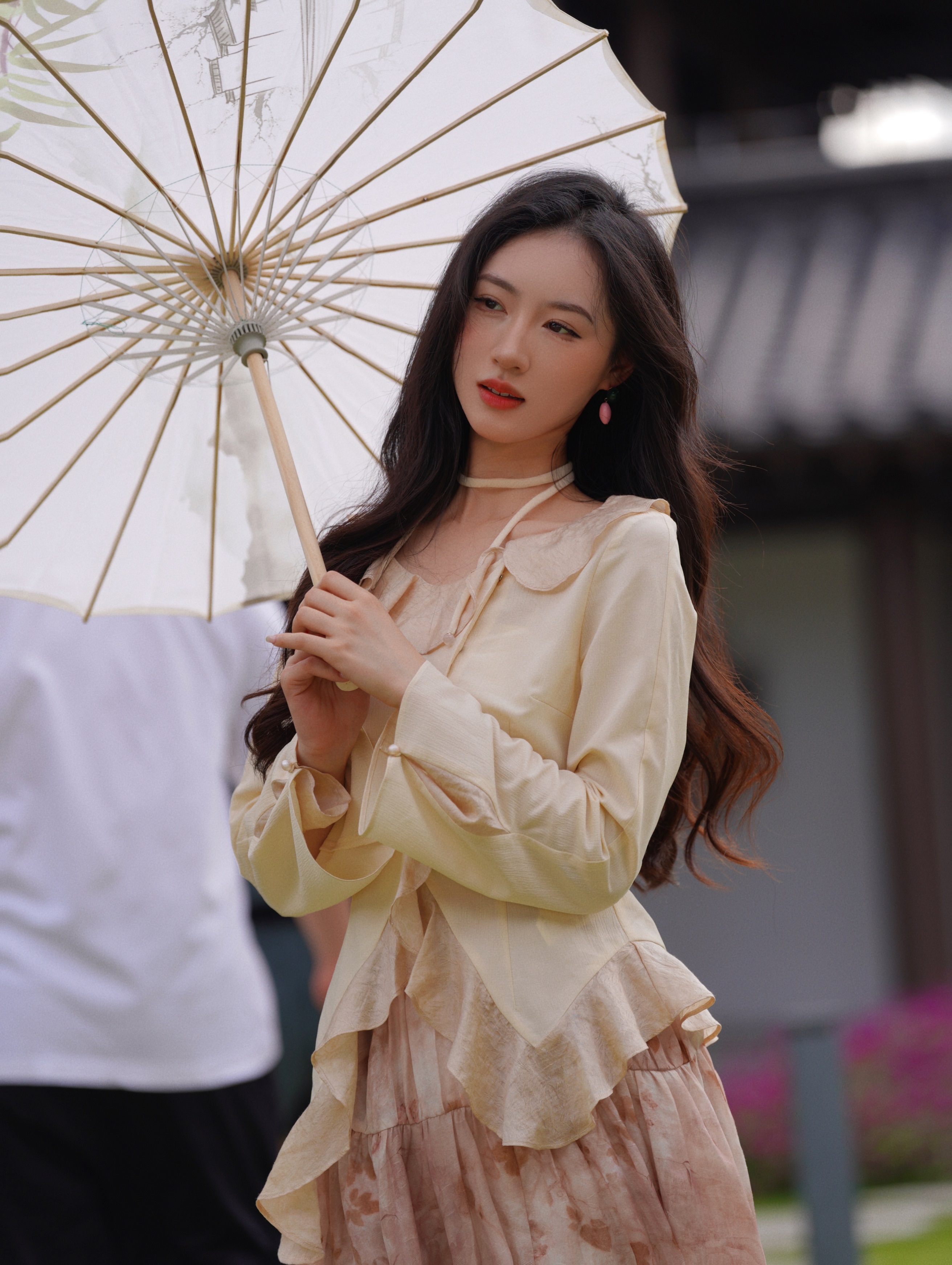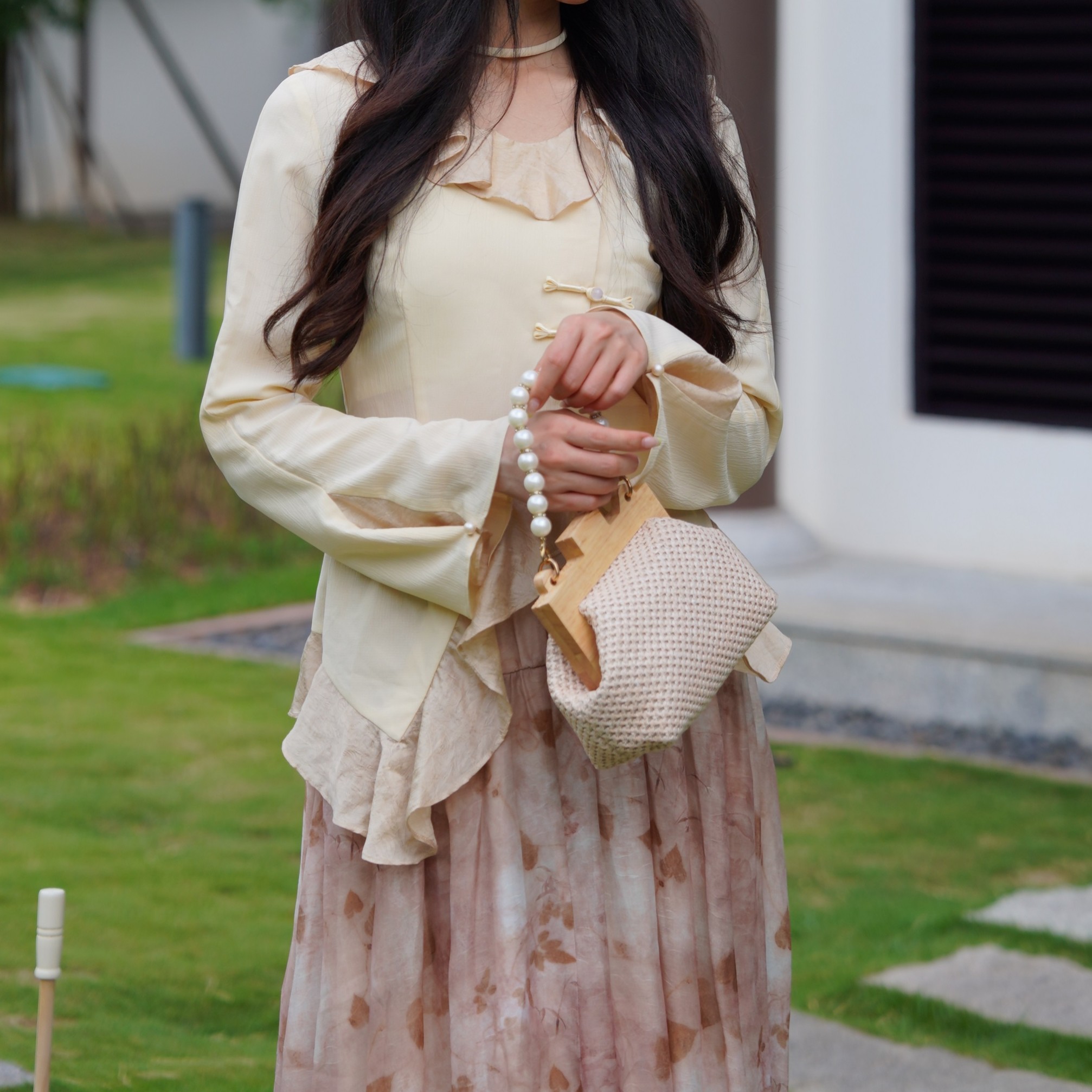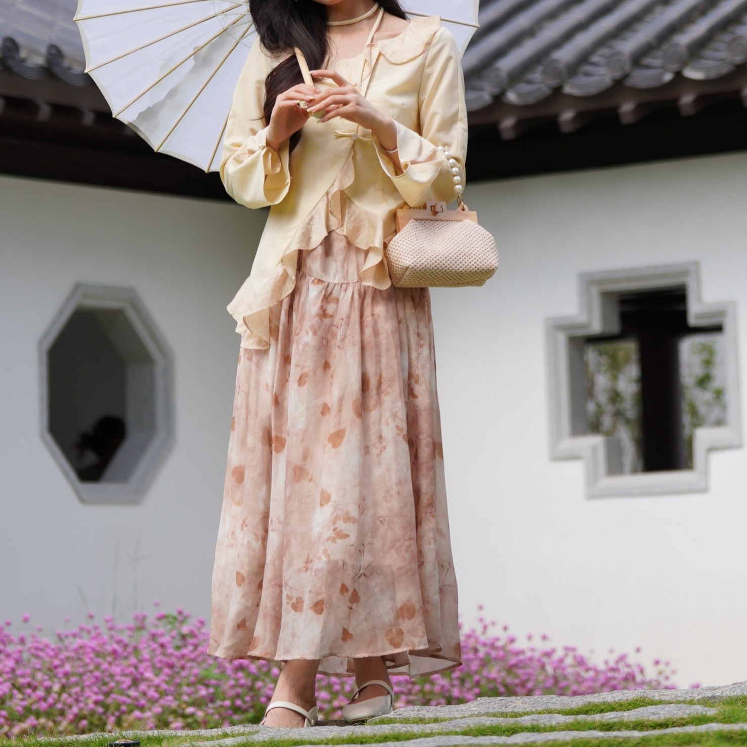 两三事秋色渐染 新中式拜年服气质国风百搭提花晕染碎花两件套装