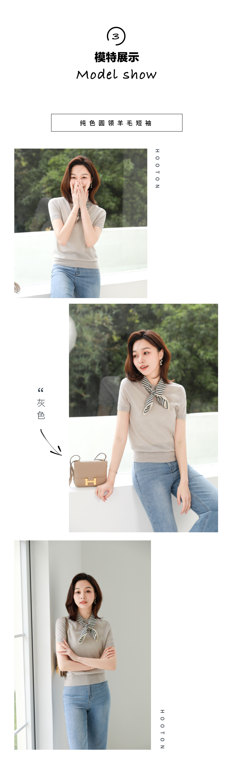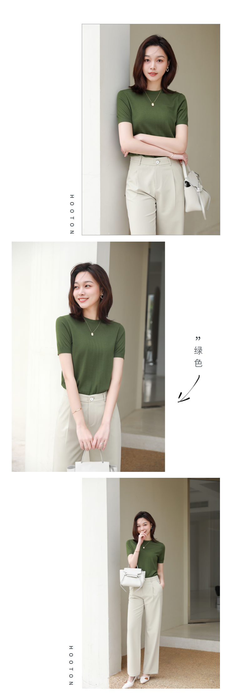 火桐hooton 纯色圆领羊毛短袖 YT2052