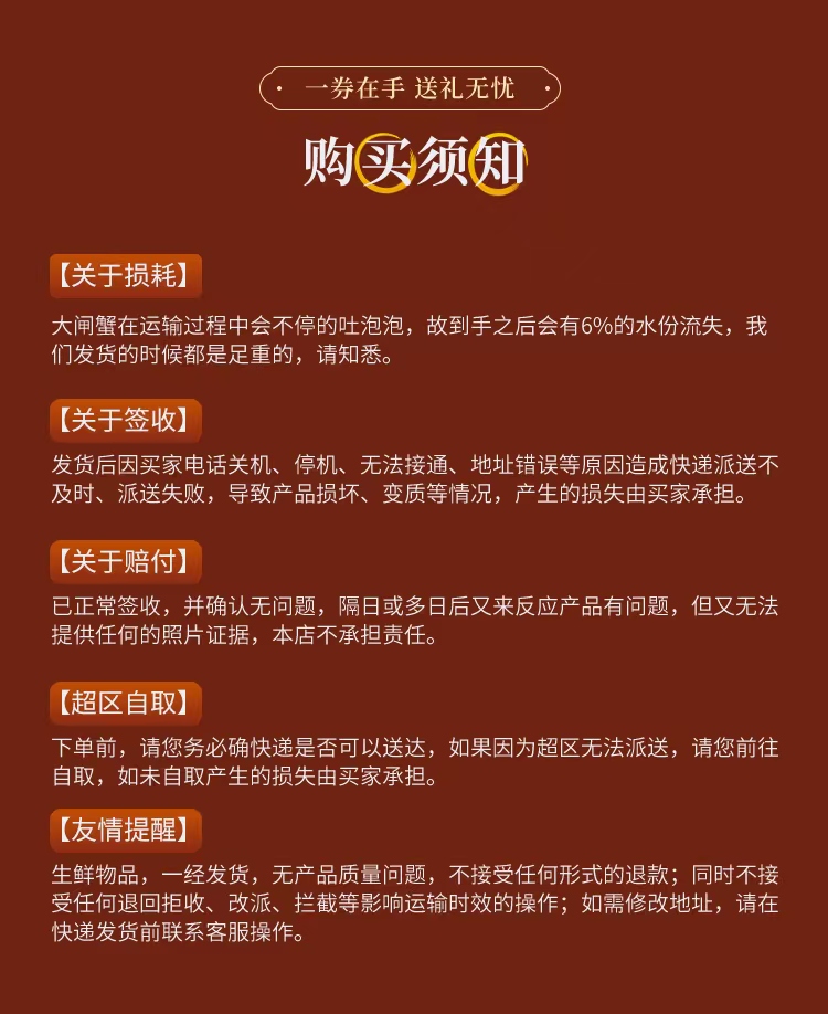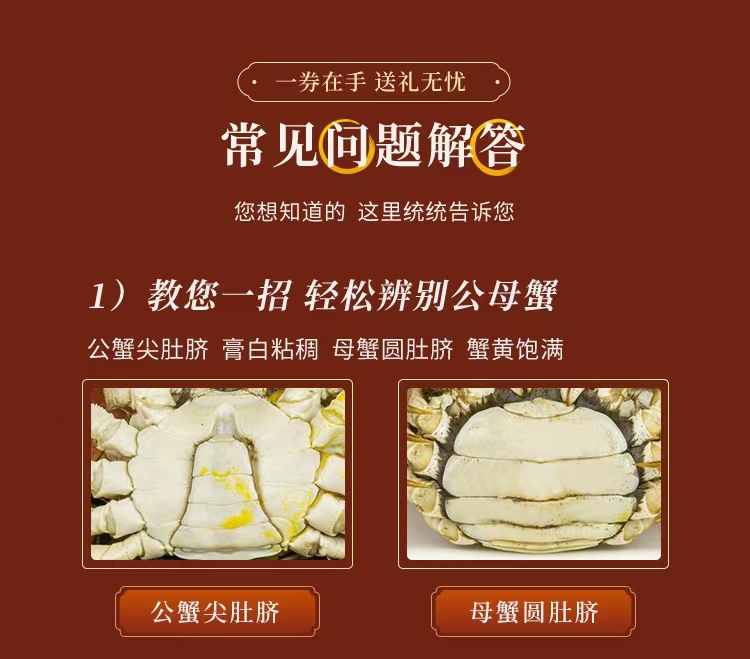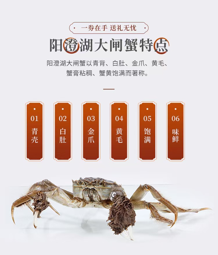 【礼券隆上记阳澄湖大闸蟹礼券3688型公蟹5.0两 母蟹4.0两 5对10只装