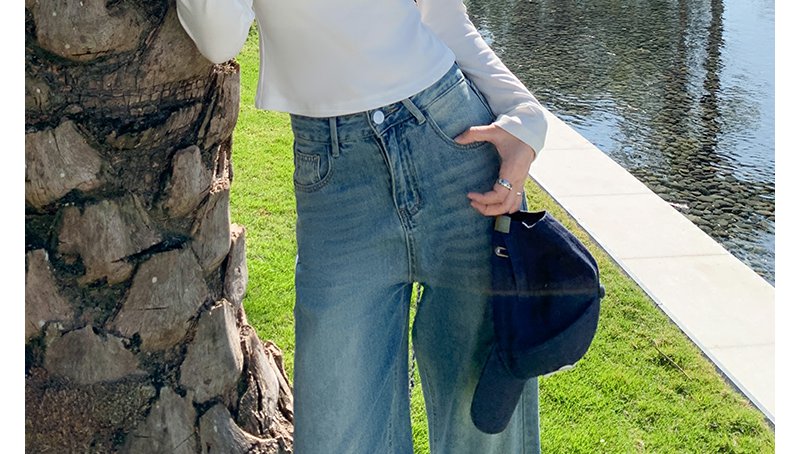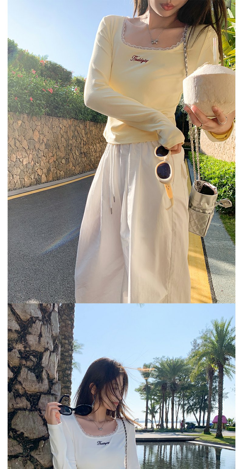 <曾小咸推荐>2色方领蕾丝边修身短款长袖T恤