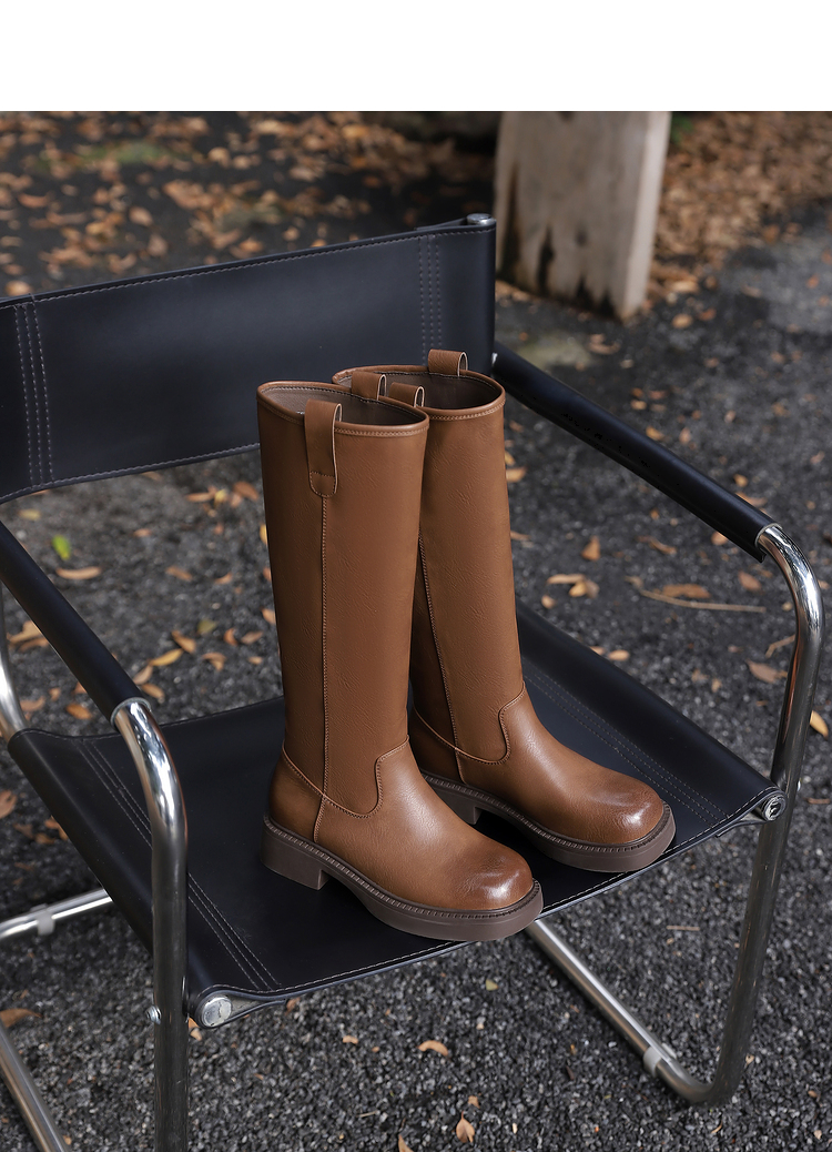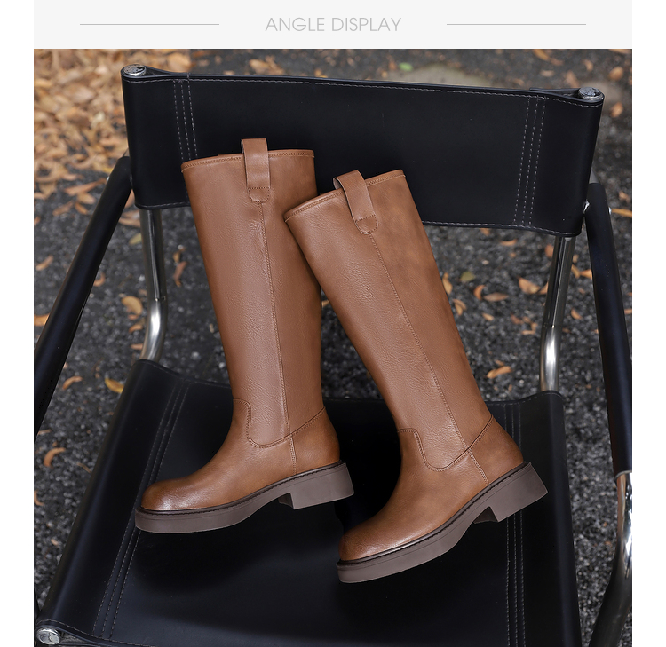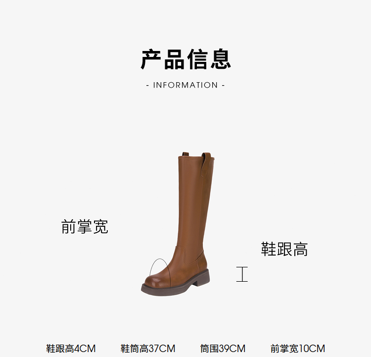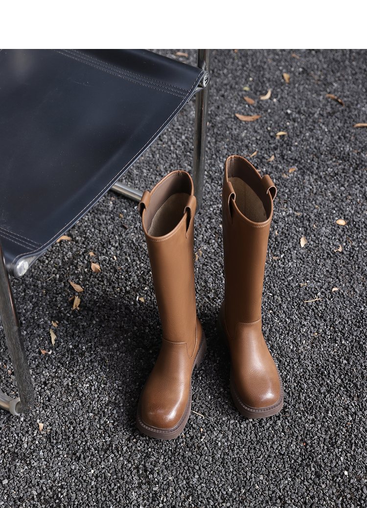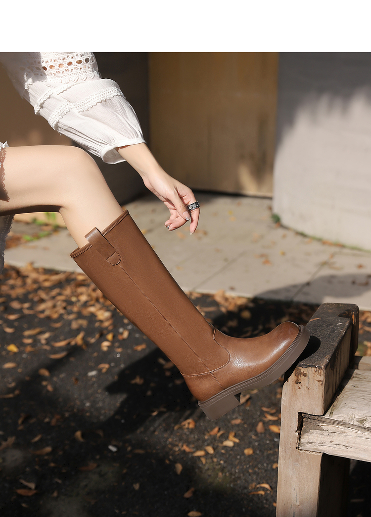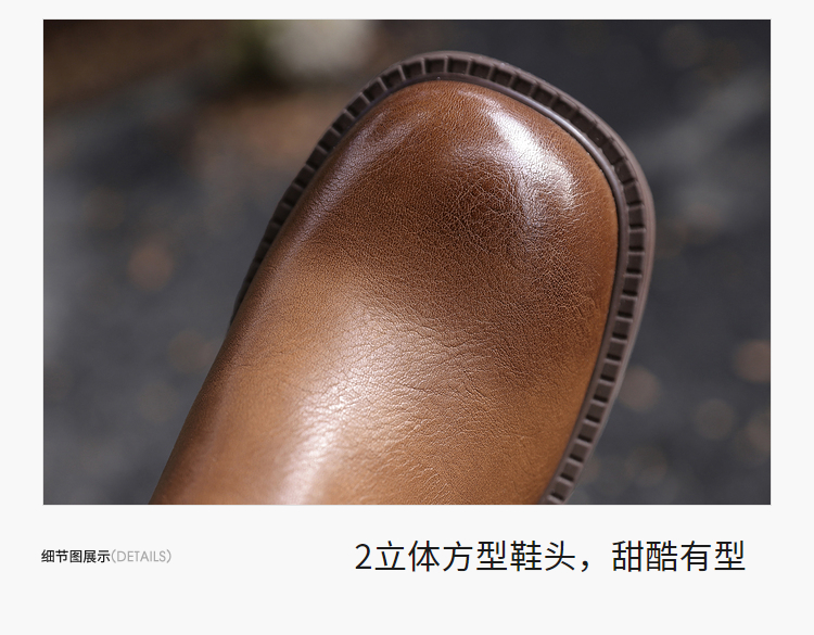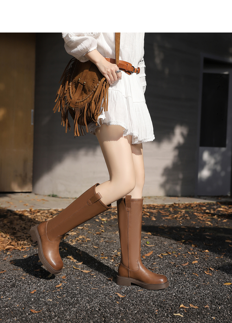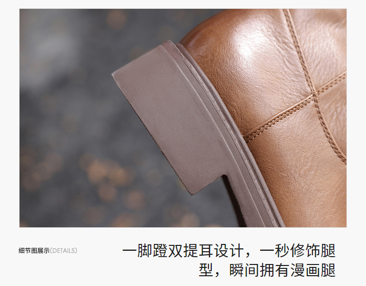 西遇复古骑士靴女新款秋冬美拉德长筒靴棕色方头厚底高筒长靴V0034339