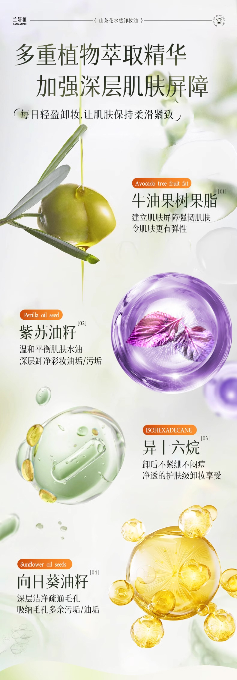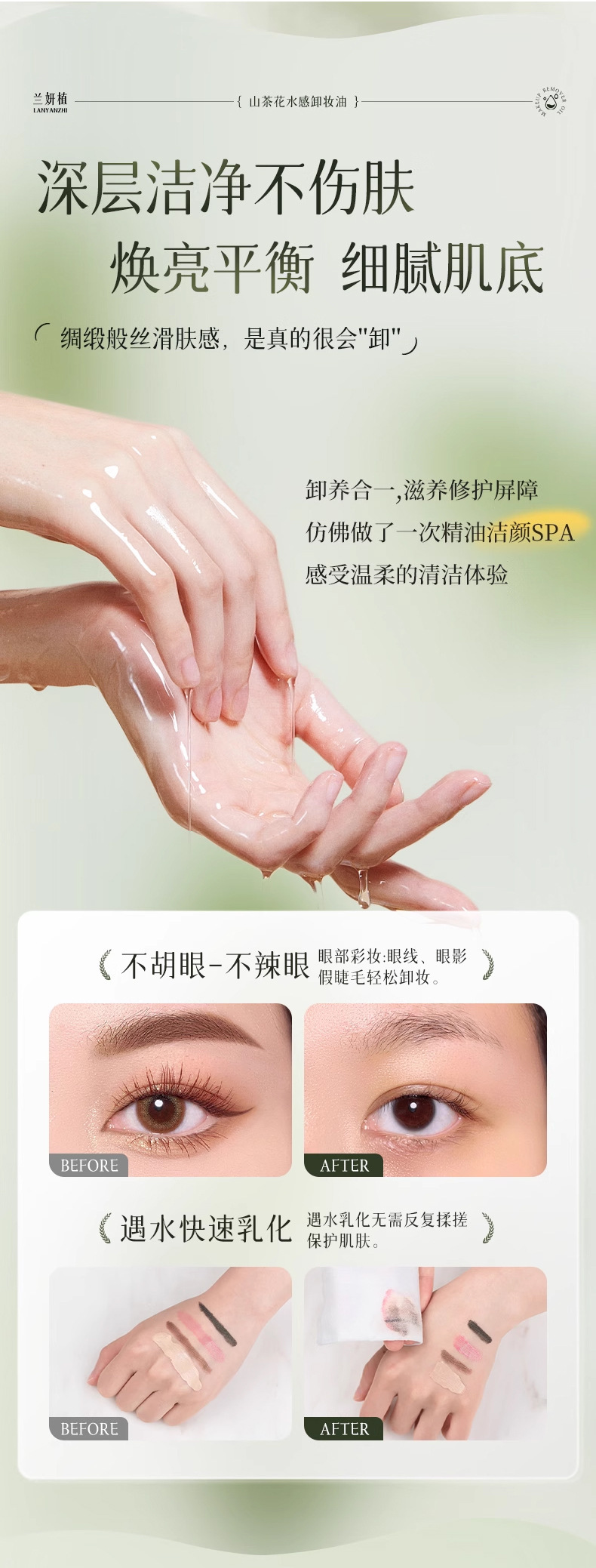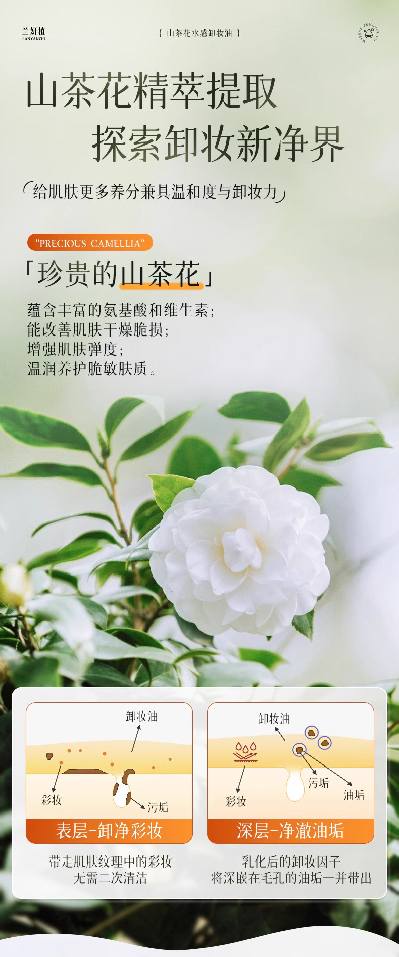 「买1送1!山茶花精粹」山茶花水感卸妆油 植物净澈眼唇脸三合一温和不刺激清洁美妆卸妆油