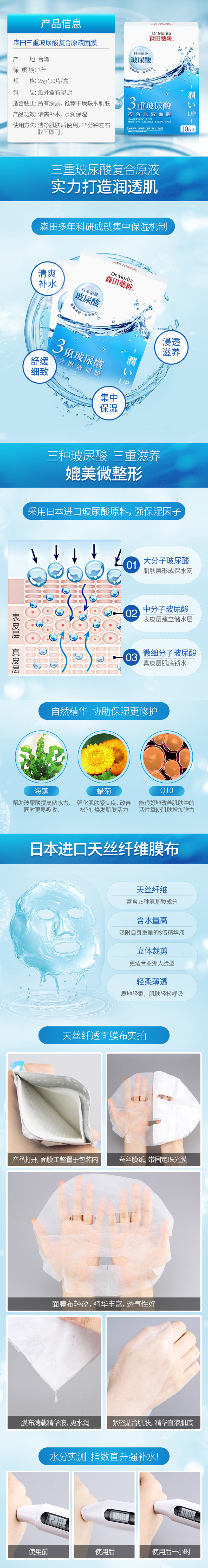 森田药妆 三重玻尿酸复合原液面膜 10片/盒