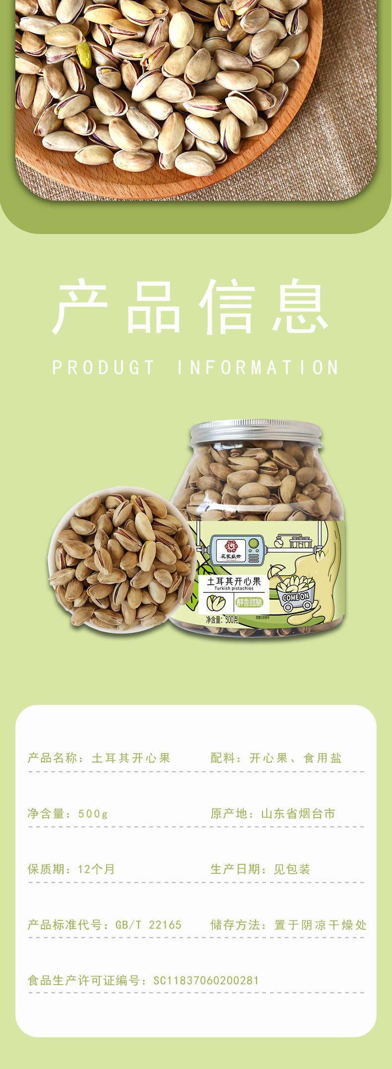 【自营】花家盛世 土耳其开心果500g圆罐装新鲜健康美味 HJSSJG026