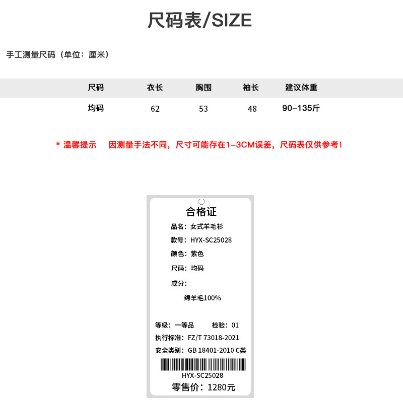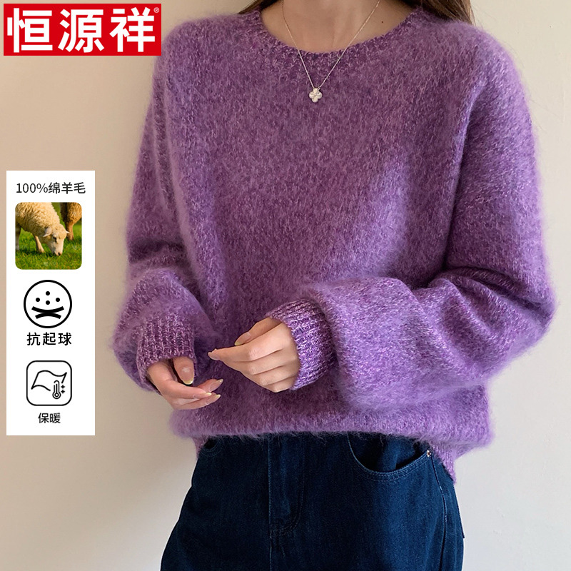 【2.3折 送运费险!】恒源祥主推款【澳洲羊毛 100%绵羊毛 350克加厚】秋冬新款女装拉毛圆领简约羊毛衫25028