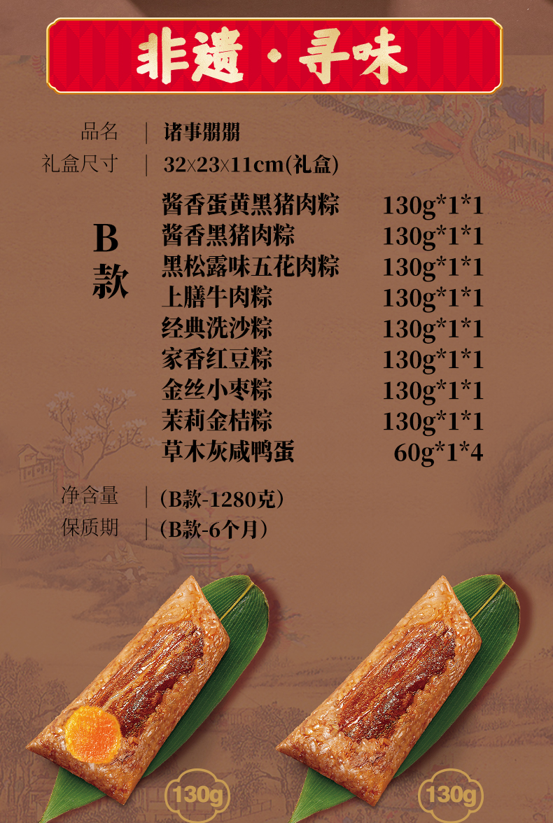 诸老大 诸事朤朤枕头粽礼盒(B款)(8粽4蛋) - 1280g【端午】SKT