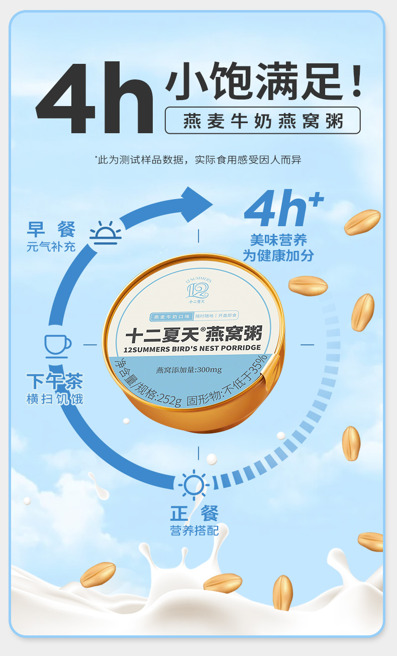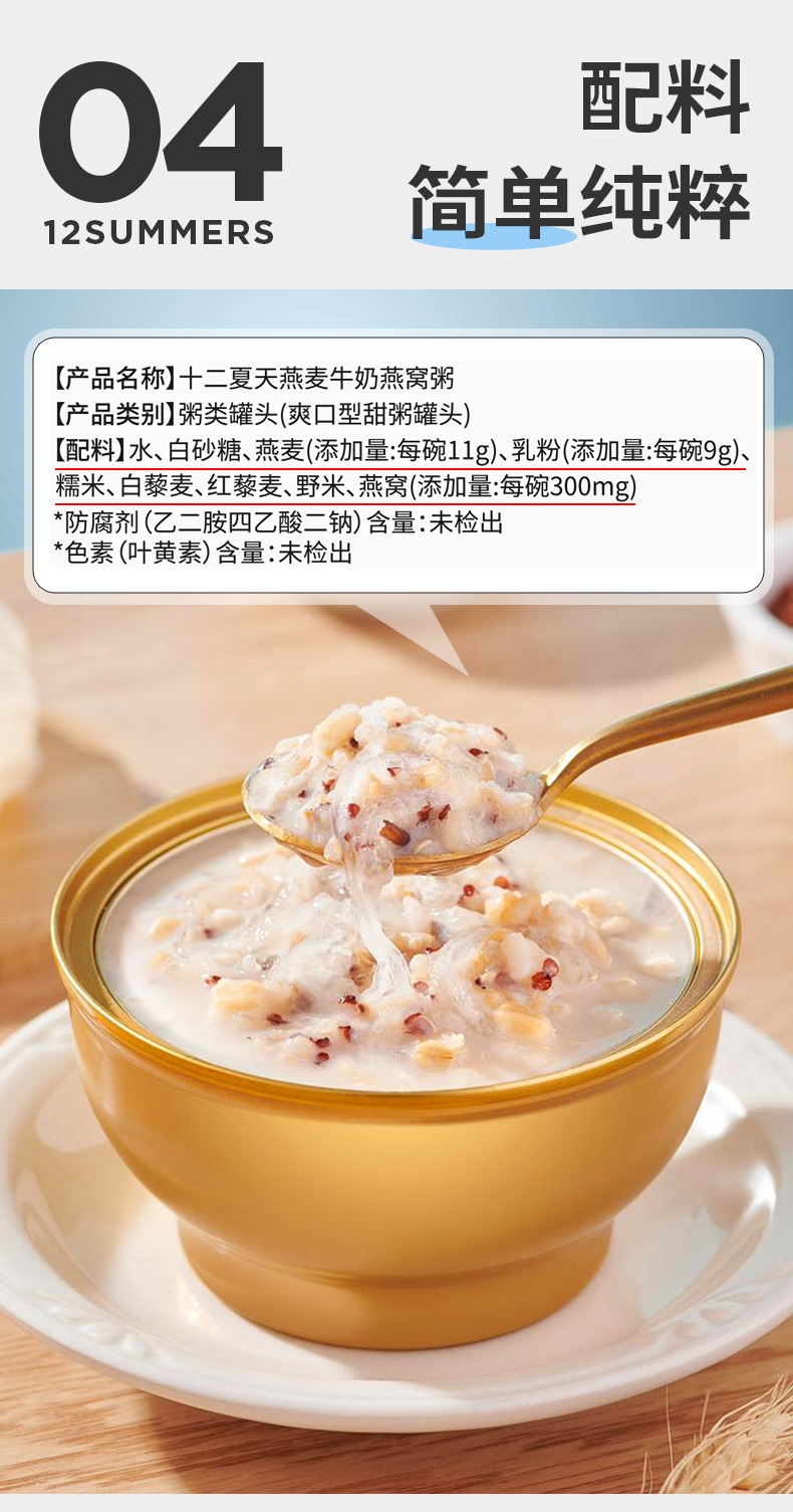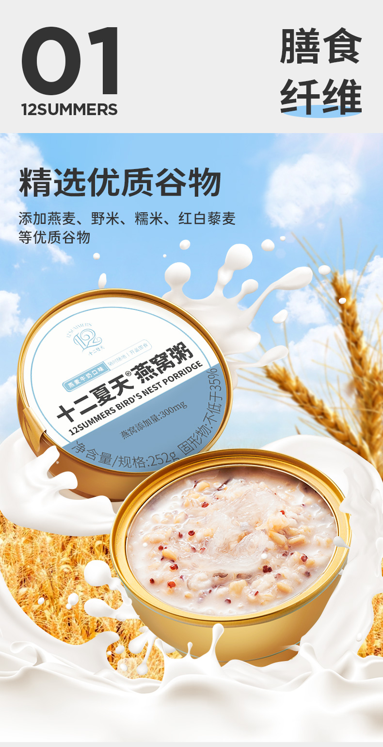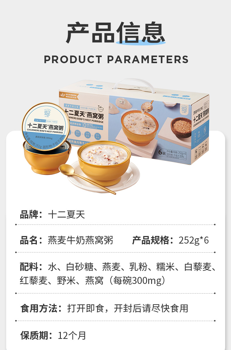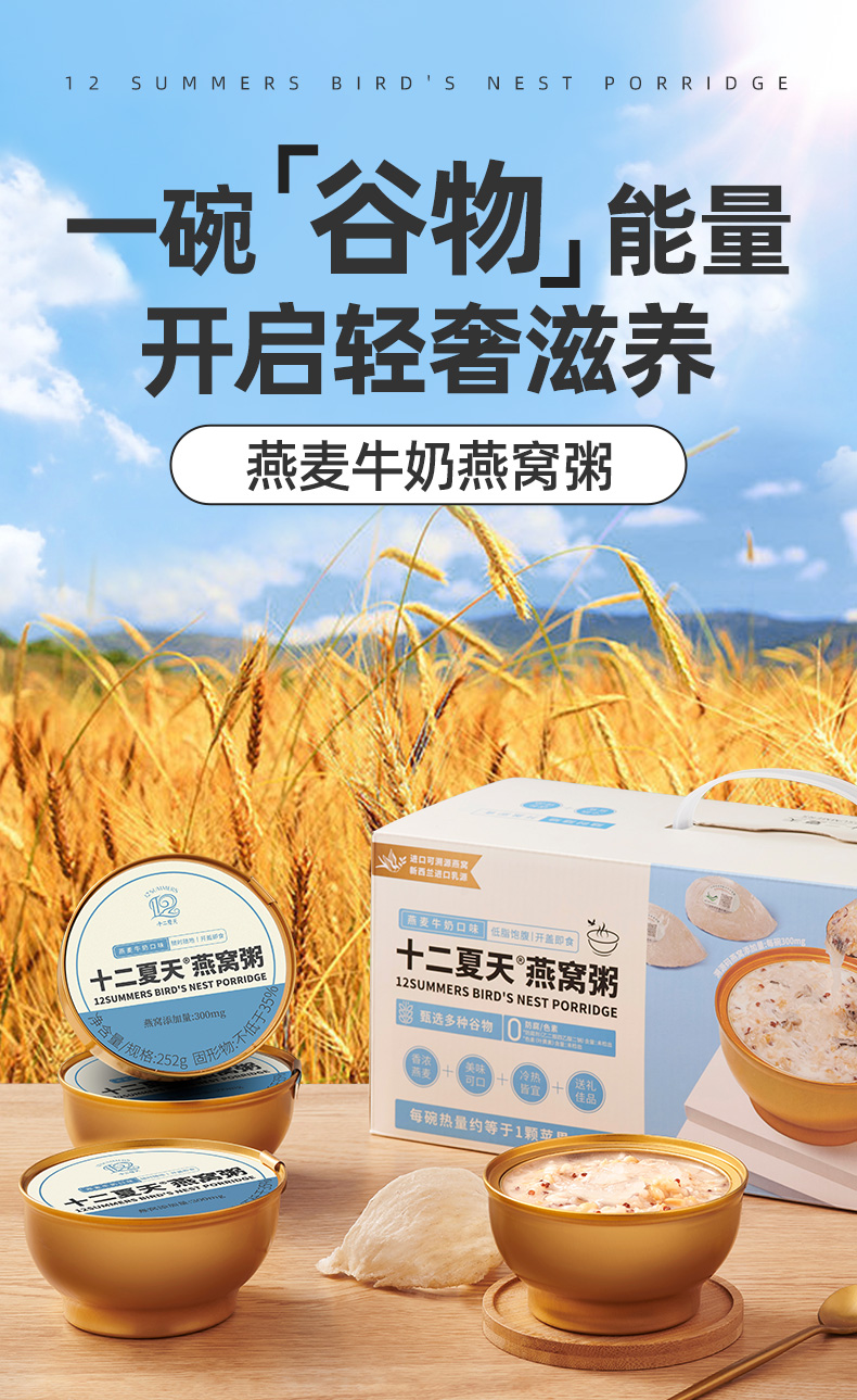 十二夏天燕麦牛奶燕窝粥 252g x 6碗/盒常温开盖即食