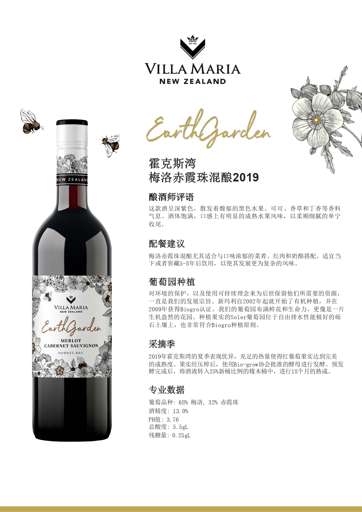 进口新西兰新玛利自然花园梅洛赤霞珠混酿红葡萄酒750ml