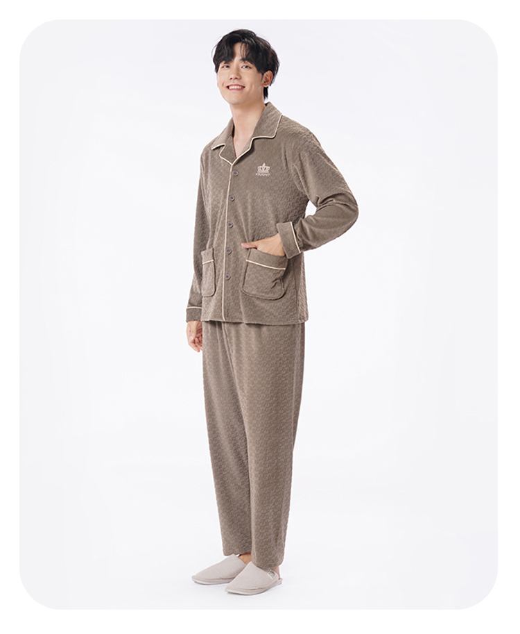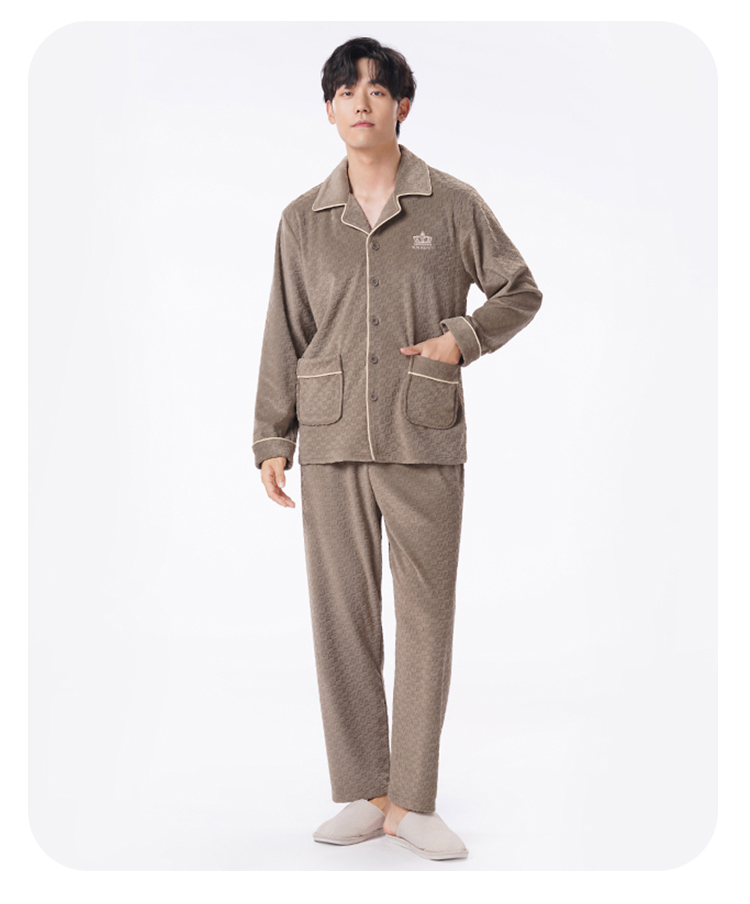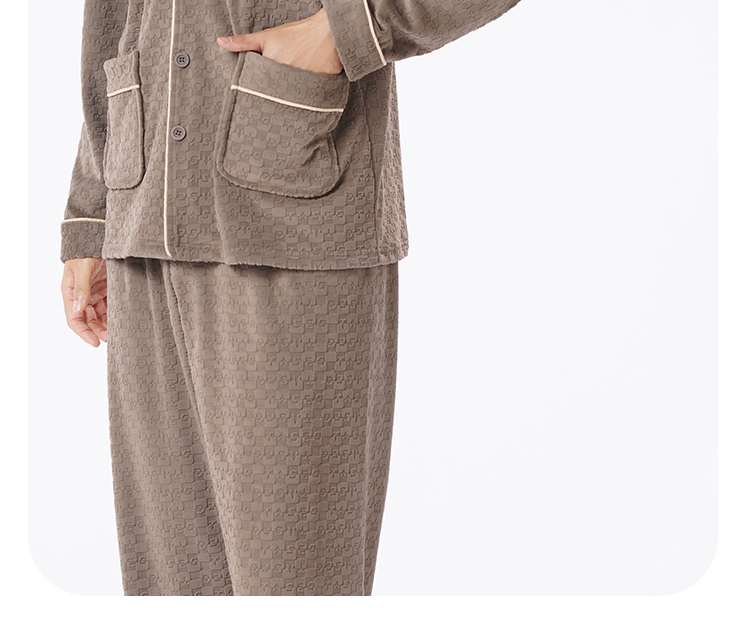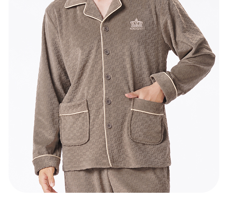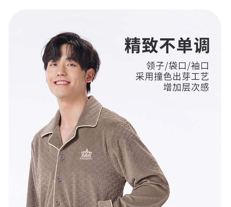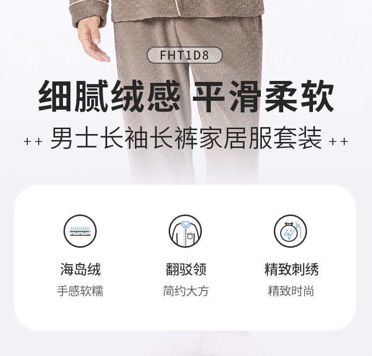 都市丽人都市锋尚睡衣好睡好眠长袖海岛绒烂花厚男士海岛绒套装FHT1D8