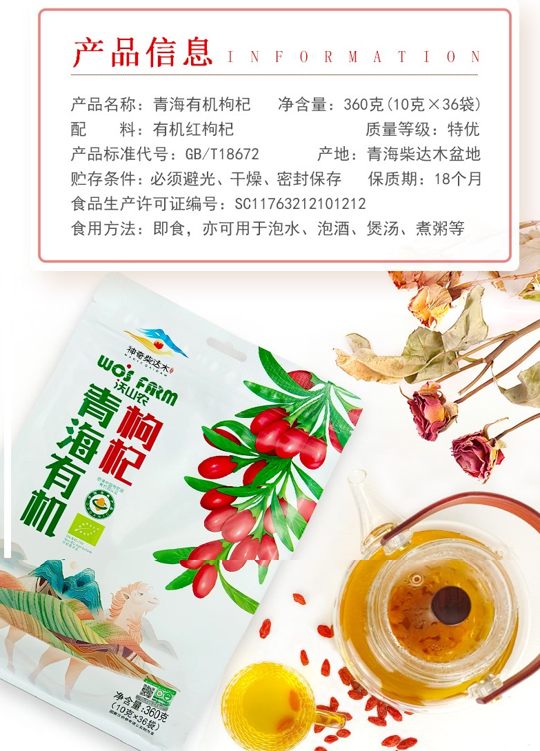 沃山农有机红枸杞 特优级大果青海柴达木正宗干枸杞子泡茶煮水烹饪