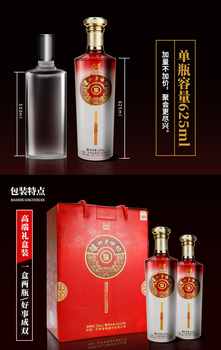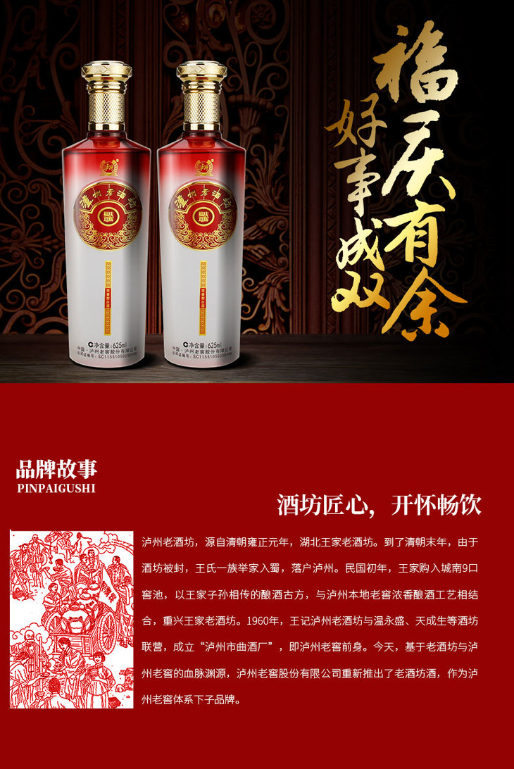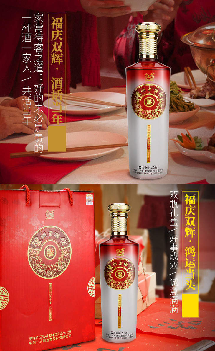 【泸州老窖酒名堂 会员日5折】52度 泸州老酒坊 福庆双辉 625ml*2*3