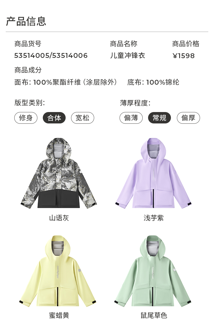 moodytiger25年新品儿童柔软舒适暴雨级防护冲锋衣【天赋】53514005