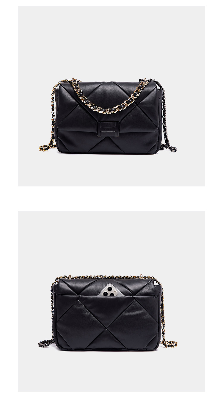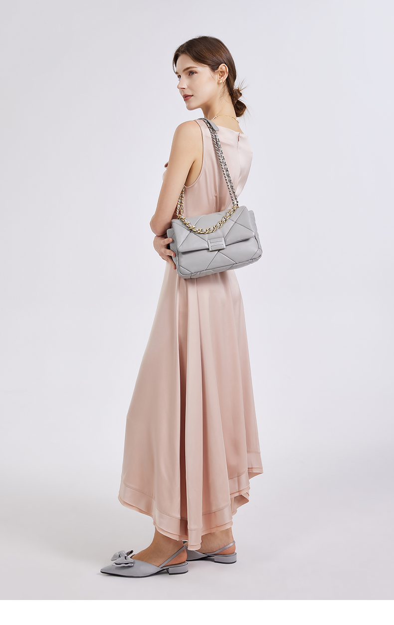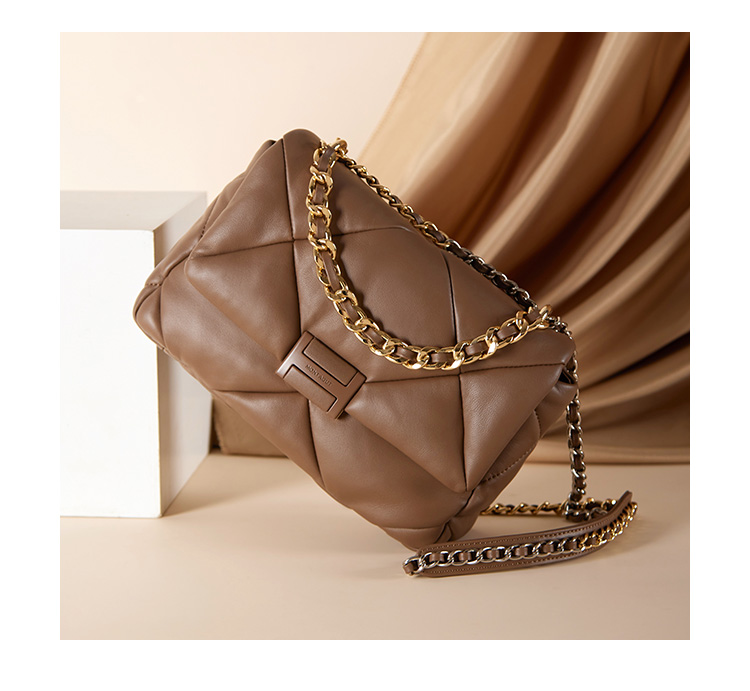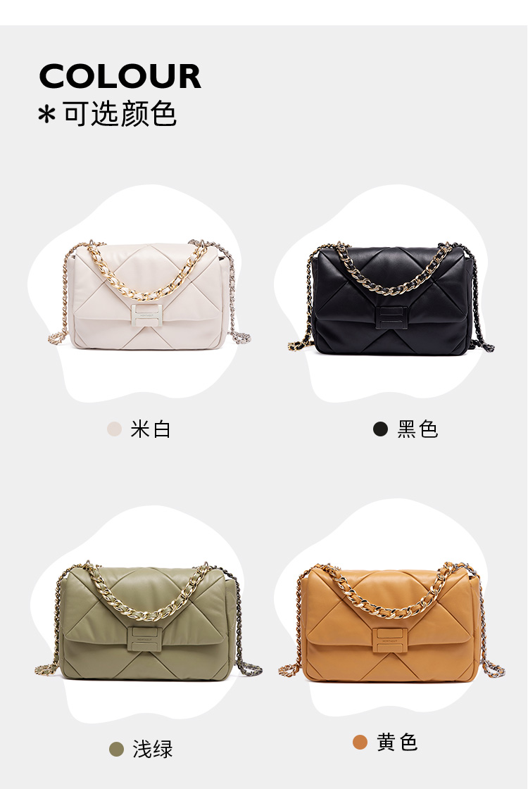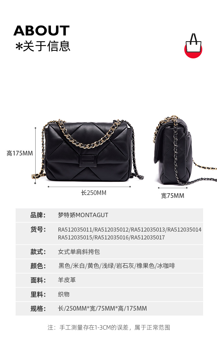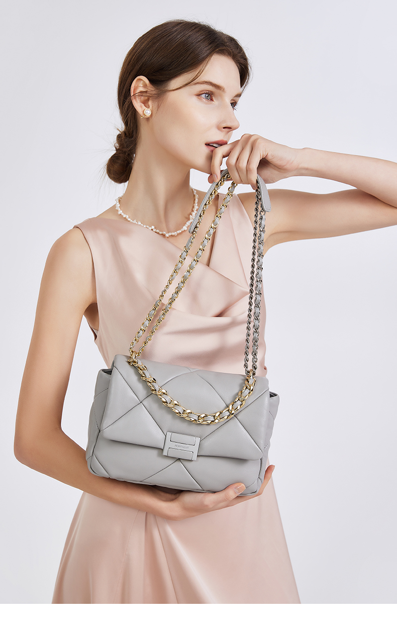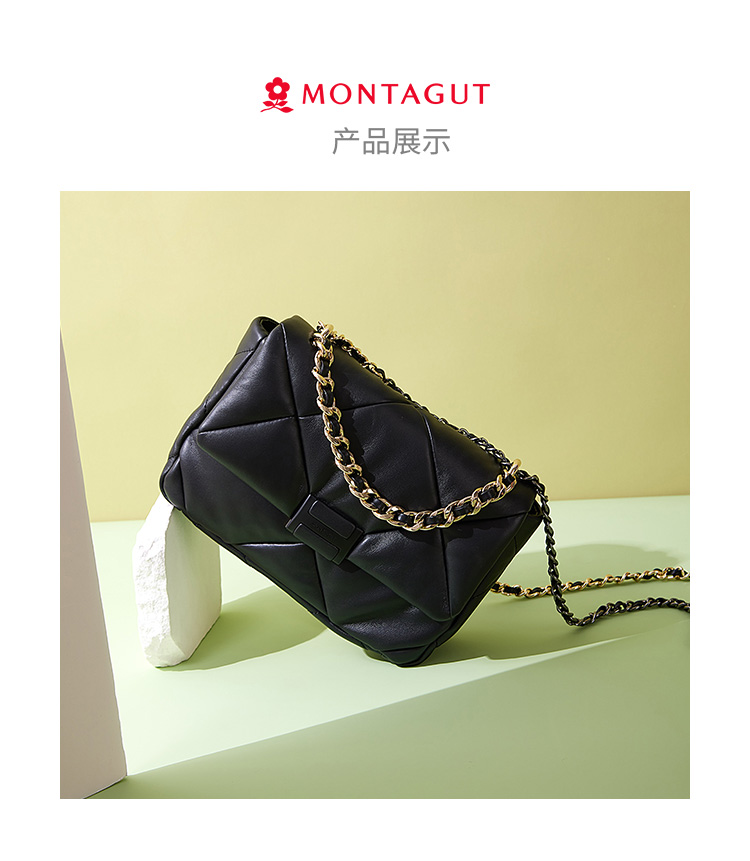 【高级羊皮系列】梦特娇时髦大菱格渐变链条斜挎包小号