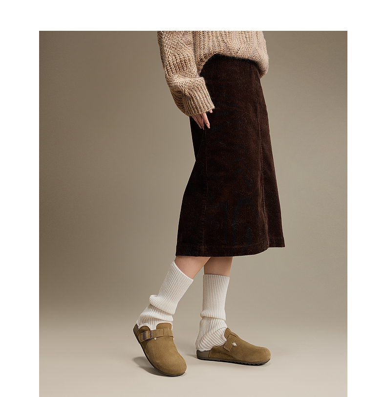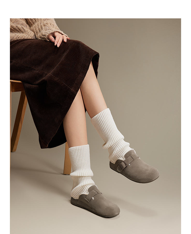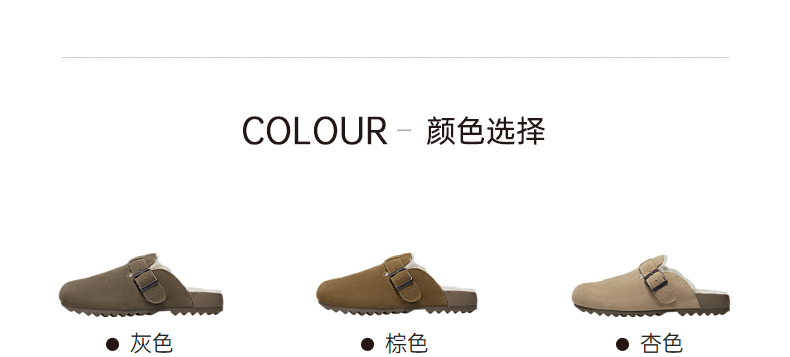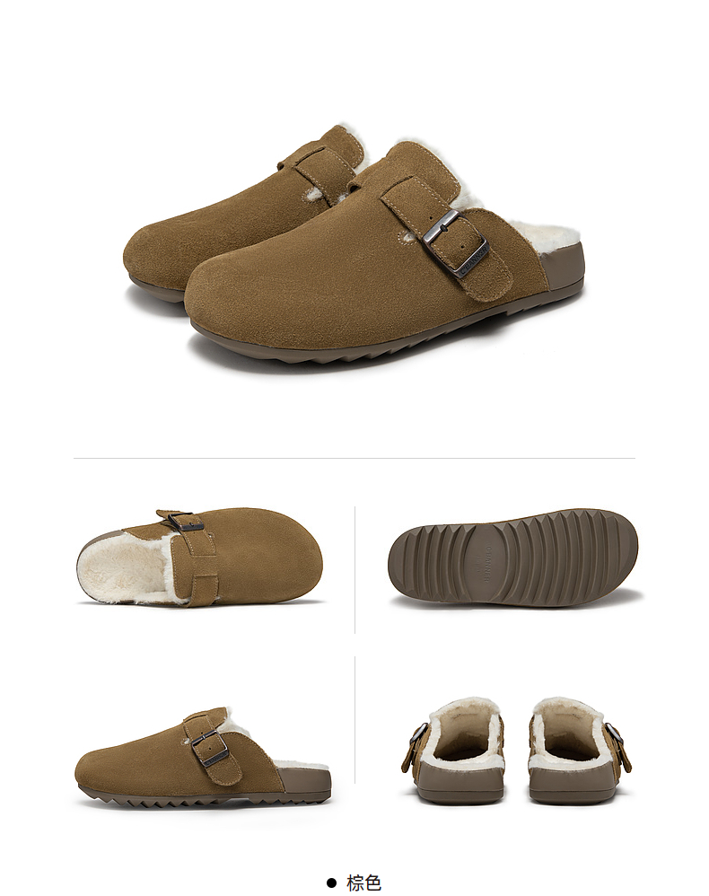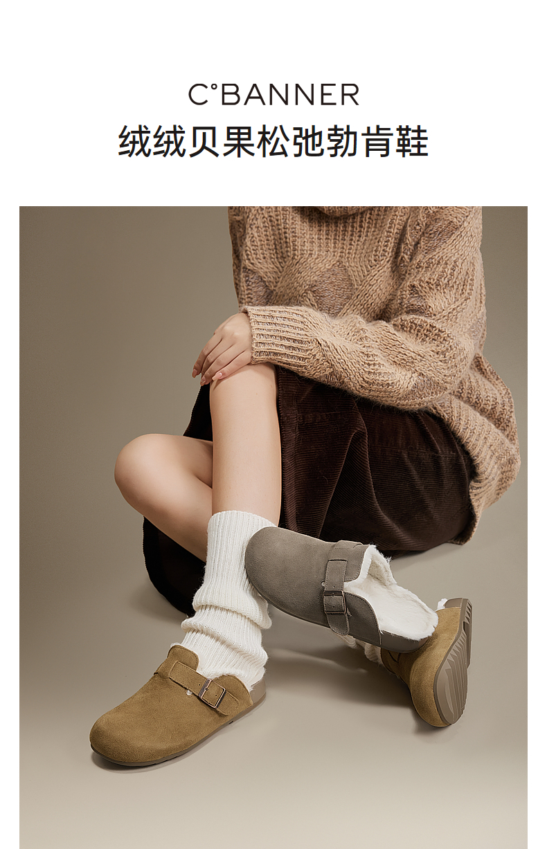 千百度平底加绒勃肯鞋女款冬季家居保暖可外穿毛毛拖鞋A24635601