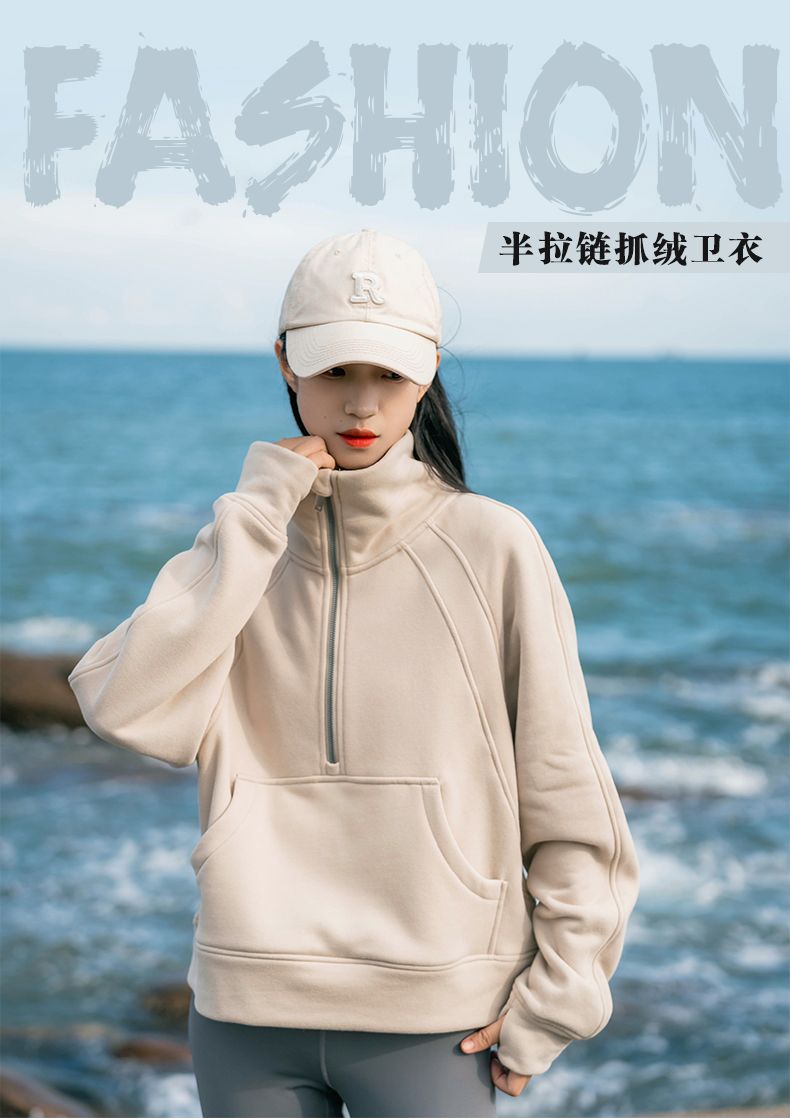 【断码清仓】积能 秋冬保暖女款跑步运动瑜伽套头连帽抓绒宽松长袖休闲卫衣