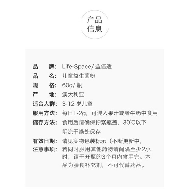 澳洲Life space 儿童益生菌3-12岁