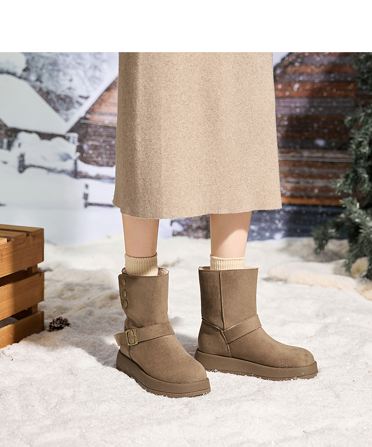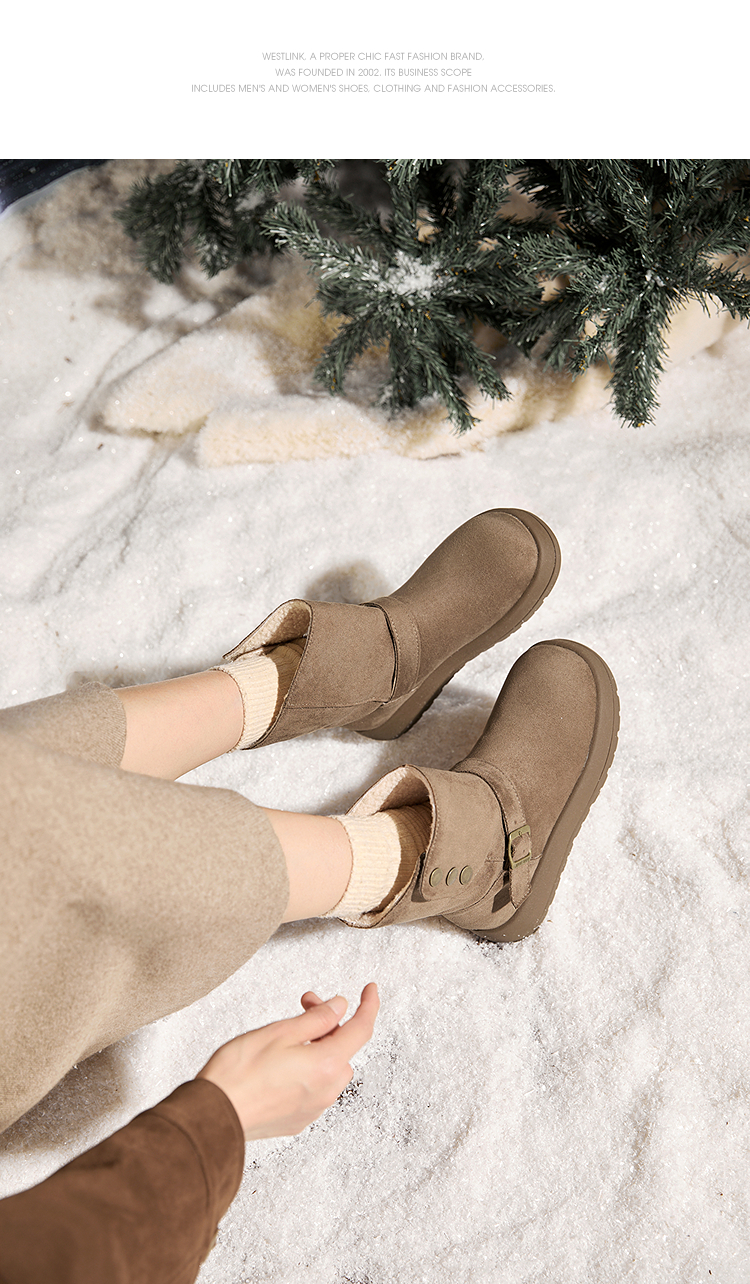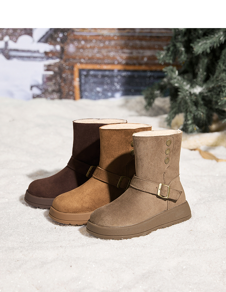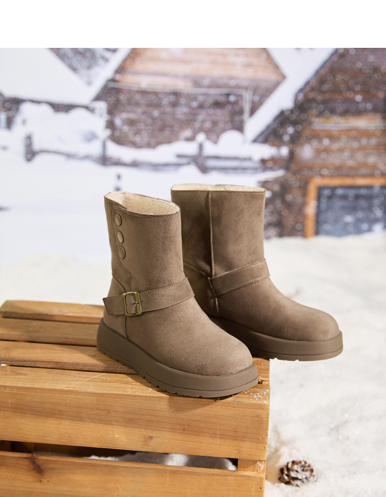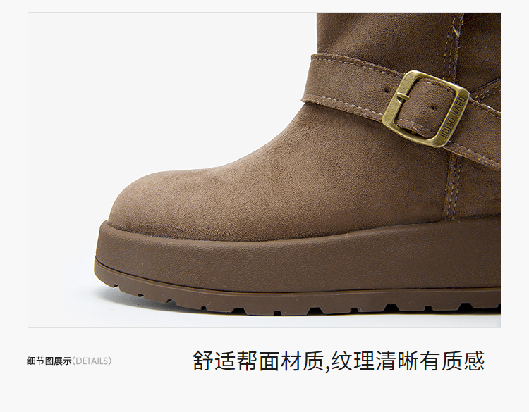 西遇厚底雪地靴女新款冬季两穿英伦马丁靴加厚加绒保暖棉鞋子V2457333
