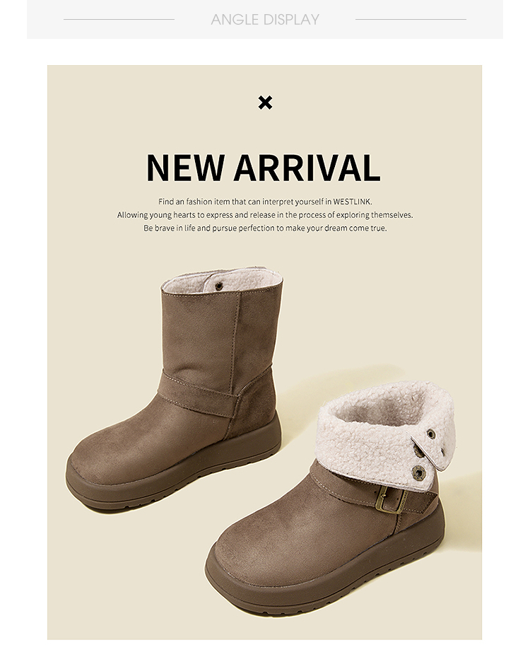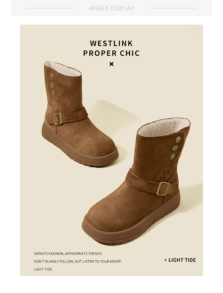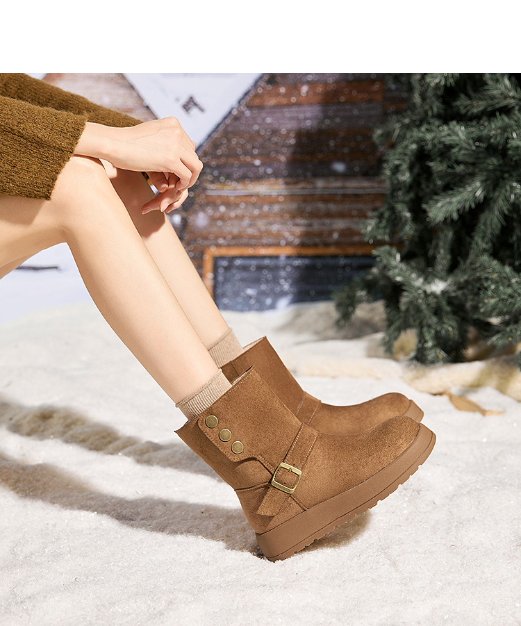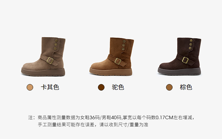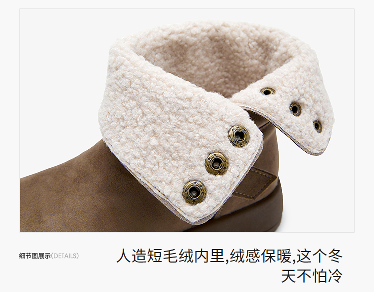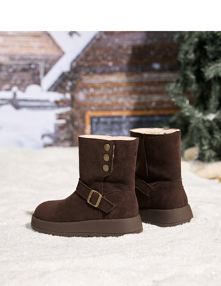 西遇厚底雪地靴女新款冬季两穿英伦马丁靴加厚加绒保暖棉鞋子V2457333