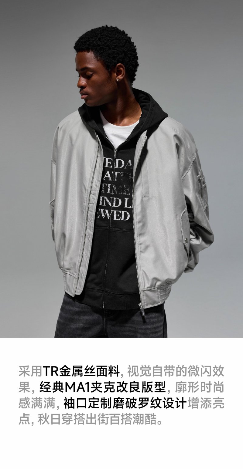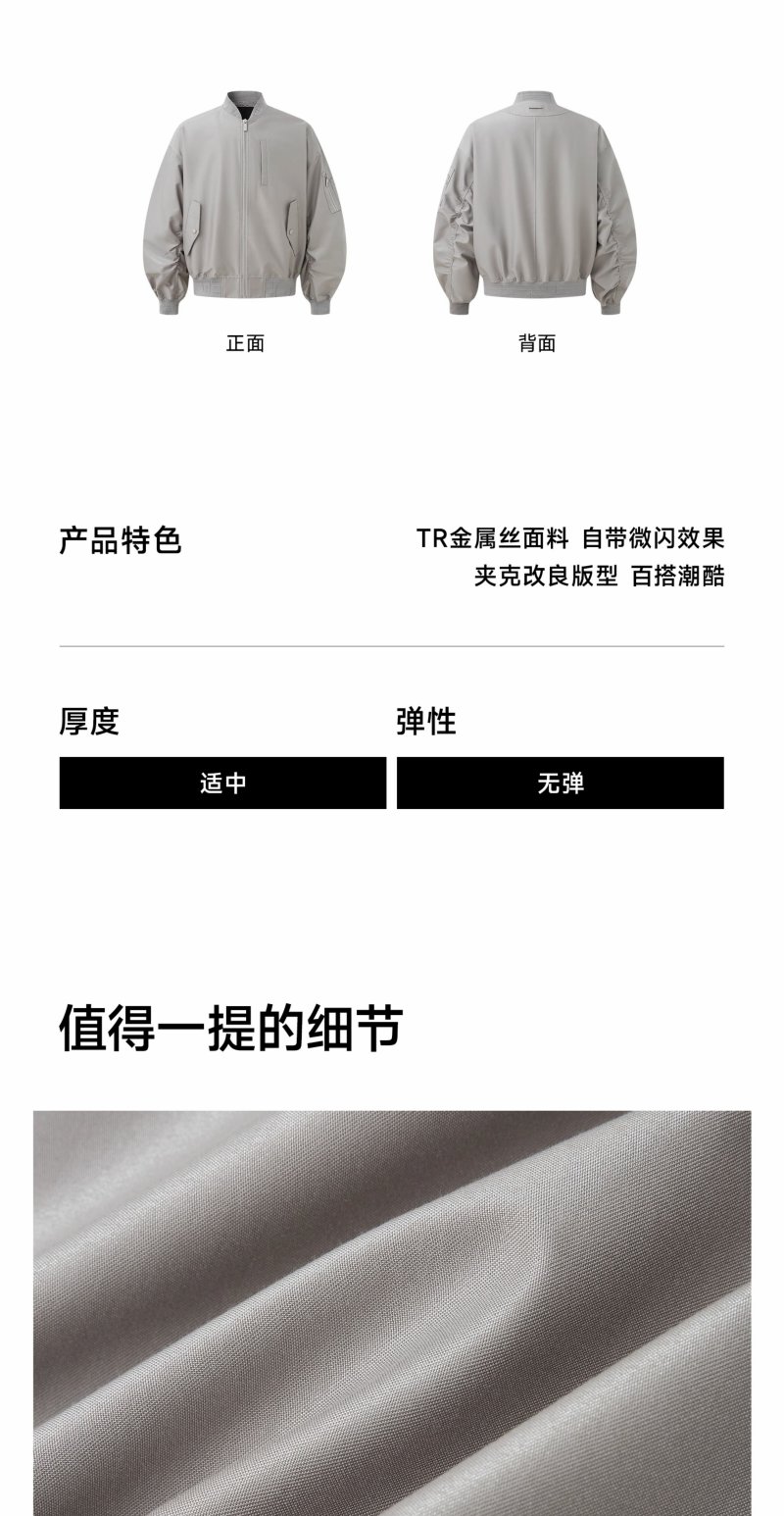 CHINISM赤尘 浅灰色TR金属丝飞行夹克男冬季美式复古MA1男士外套