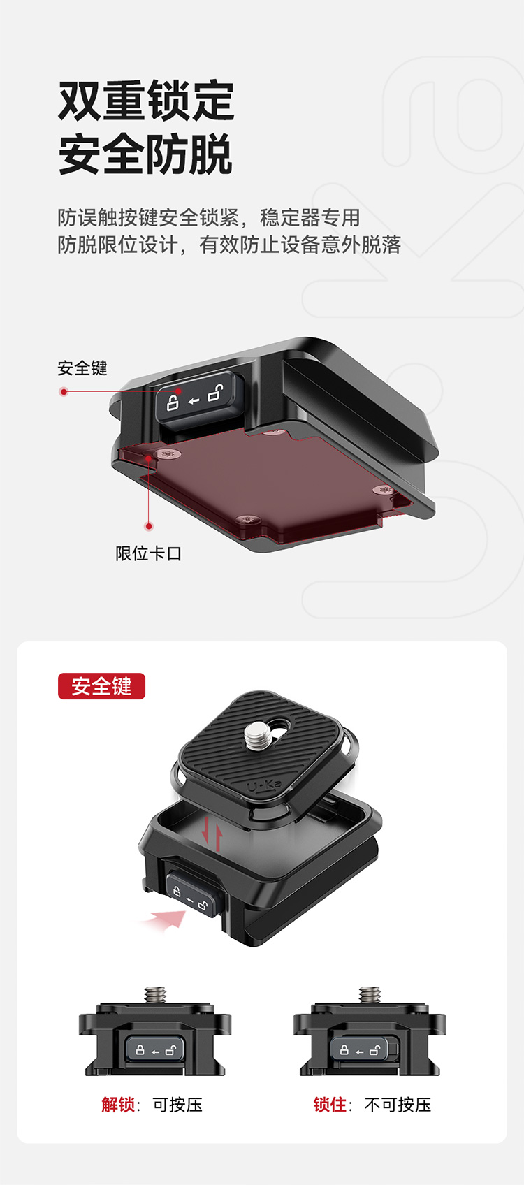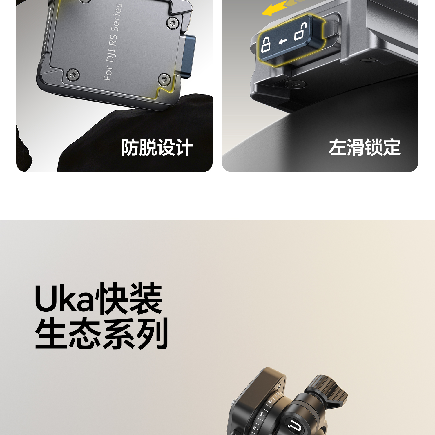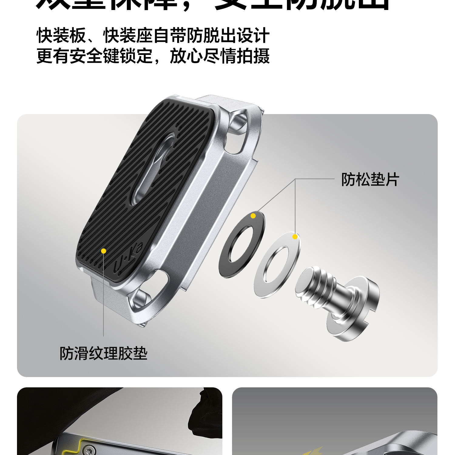 Ulanzi优篮子Uka05稳定器快装板适用于DJI大疆RS/4/3/2稳定器快拆板双重锁定安全防脱兼容阿卡小隼F38快装