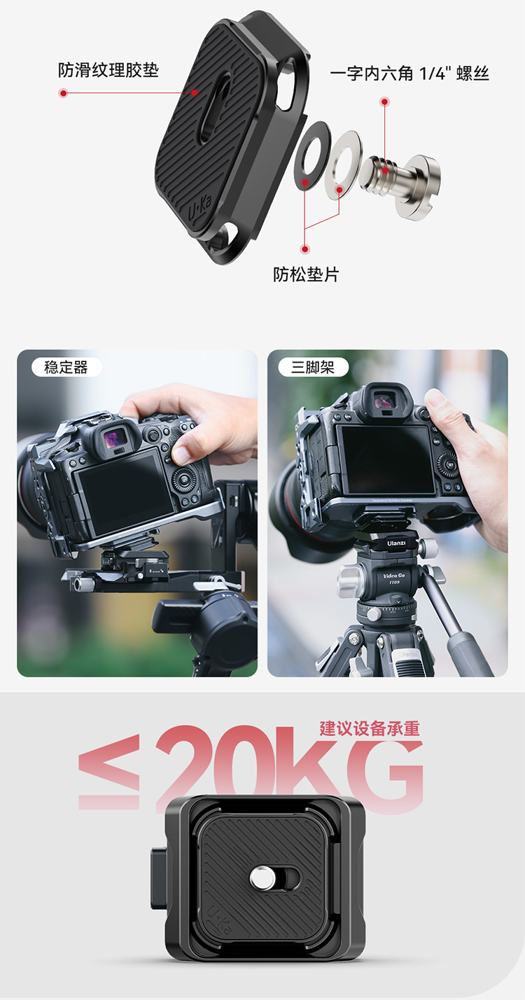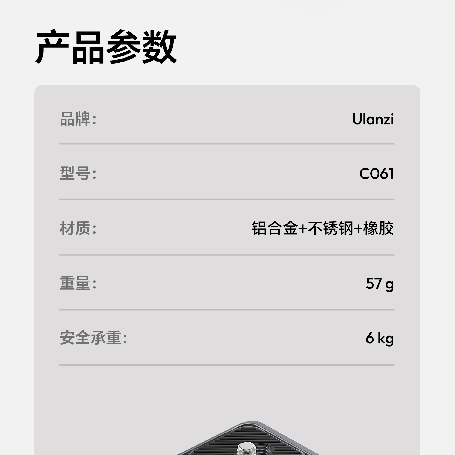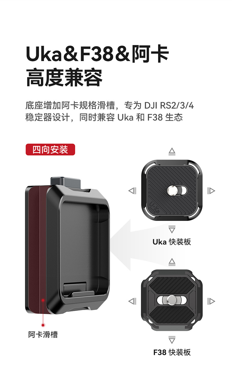 Ulanzi优篮子Uka05稳定器快装板适用于DJI大疆RS/4/3/2稳定器快拆板双重锁定安全防脱兼容阿卡小隼F38快装