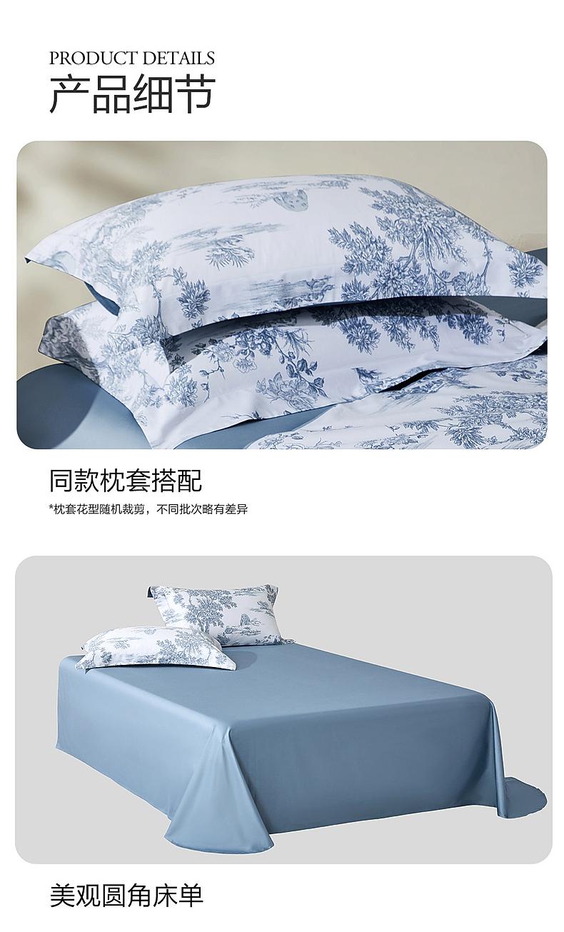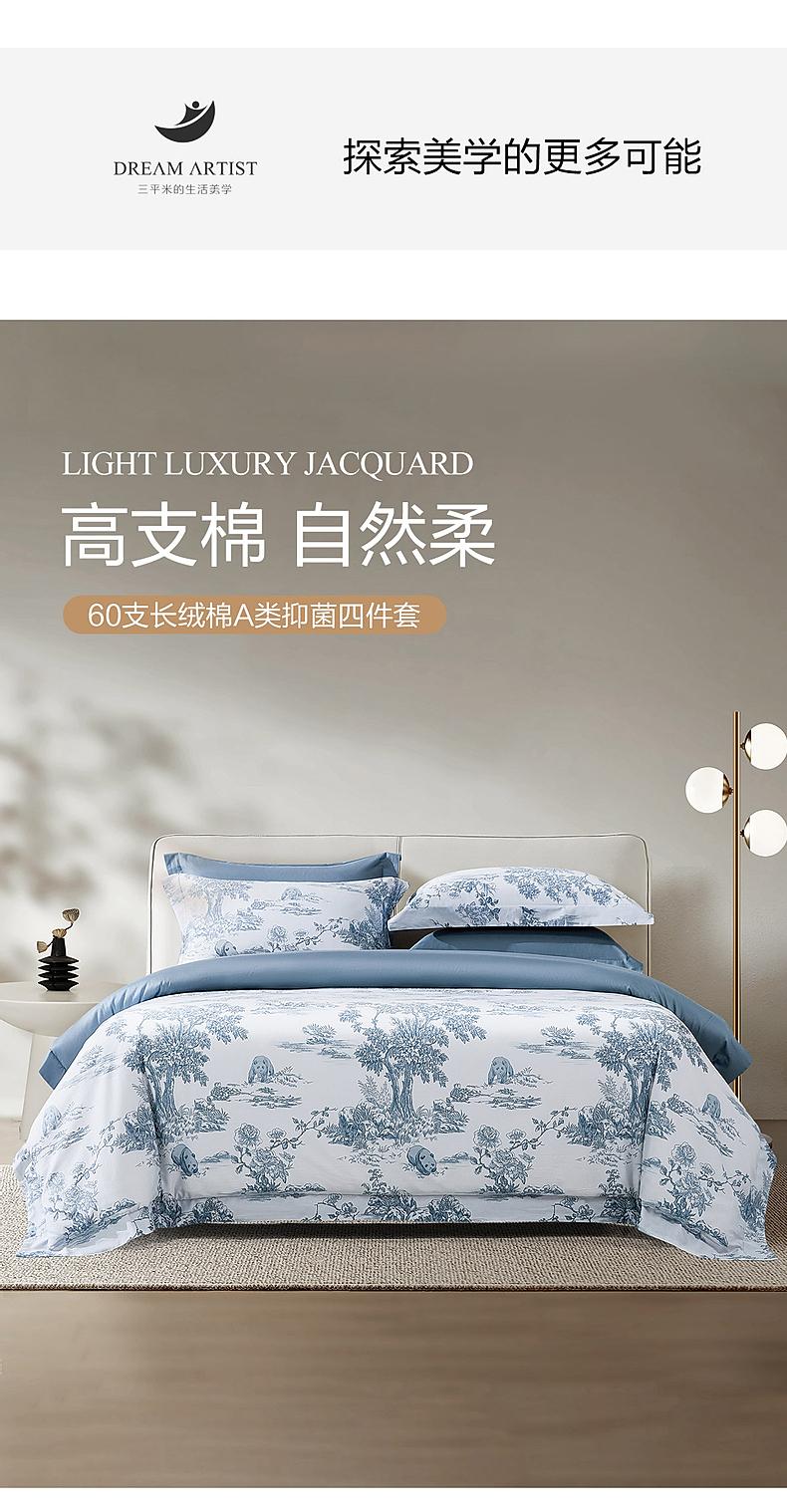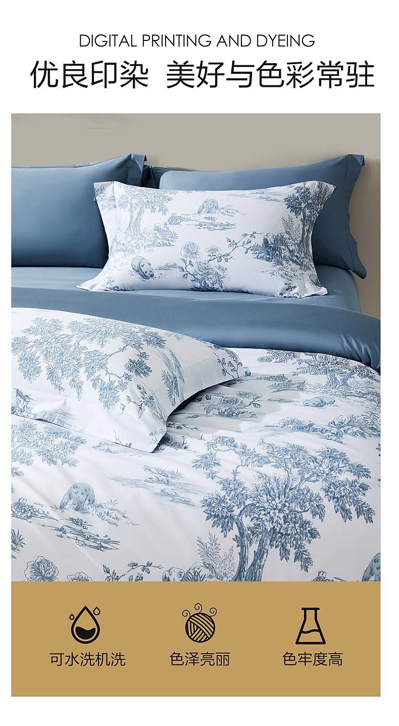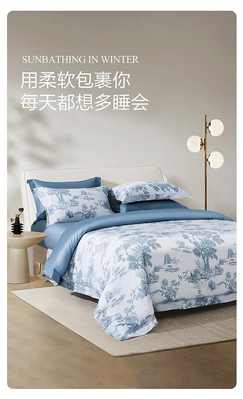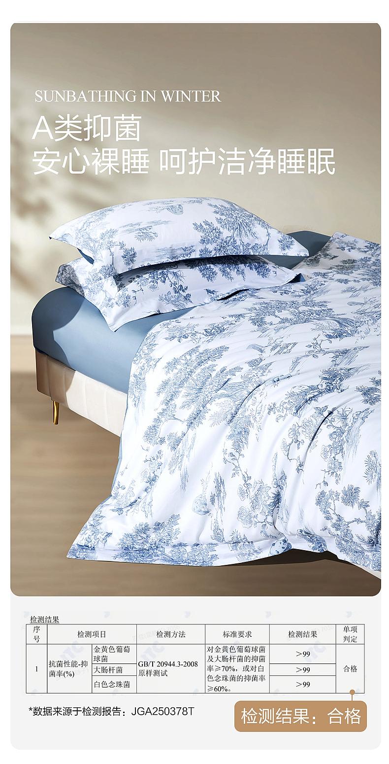 水星家纺60支长绒棉A类抑菌四件套贡缎舒适柔软裸睡床上用品严选